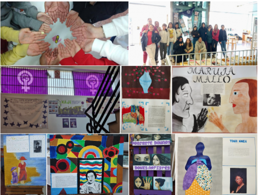 Com cada any, hem commemorat el Dia Internacional de les Dones a l’Institut: l’hem vestit de lila i hem fet tot un seguit d’activitats prèvies de sensibilització: tallers sobre feminismes, participació a la ll Jornada de Comissions de Gènere dels Instituts Públics de Catalunya, elaboració i muntatge d’una exposició del grup XAJI al Centre Cultural Bellvitge i a la nostra biblioteca, i visibilització dels sabers de les dones amb l’exposició sobre dones artistes instal.lada al vestíbul. Aquest 8 de març volem seguir compartint la capacitat creadora i transcendent de les dones, volem ser visibles per a decidir, per a ser referents d’un món sense hegemonies, sense desigualtats. És per això que hem volgut posar de manifest que, tot i els avenços aconseguits, queda molt camí per fer encara.