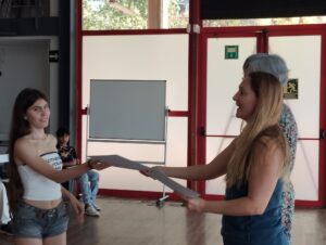 Hem fet un recull de tota la feina feta durant el curs, hem escoltat les paraules de reconeixement de la directora del centre i de la representant de la institució, encoratjant-nos a continuar treballant per a l’erradicació de tot tipus de violències. A continuació, la Cris, la nostra referent, ha fet lliurament dels diplomes de participació entre el nostre alumnat, i ens ha regalat un conte que va escriure ella mateixa.