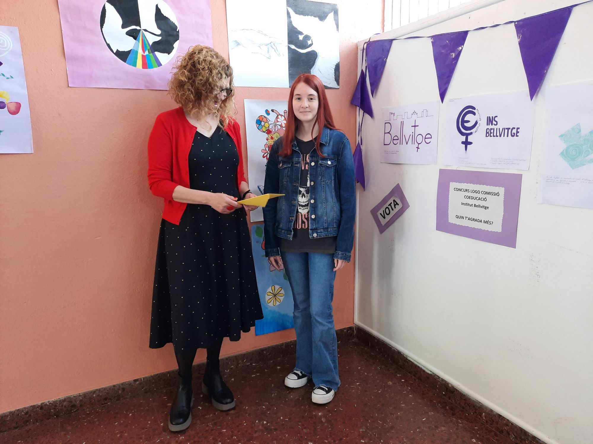 Dins el marc de les activitats pensades per a la celebració del 8M, vàrem impulsar un concurs per a la creació del logo de la comissió de coeducació del centre. L’alumnat de Disseny de 2n de Batxillerat Artístic, amb l’ajut de la Maribel Moreno, es va implicar ràpidament amb la proposta. Els quatre dissenys finalistes són els de la Leyre Martínez, la Valeria Erazo, la Carla Maresma i la Laia Valls, essent guanyadora la proposta de la Laia, a qui hem obsequiat amb un val per a l’adquisició de material de Belles Arts. A més a més, totes quatre estan convidades a un esmorzar a la cantina del centre. Des de la comissió de coeducació volem agrair la feina feta per totes les persones que s’hi han implicat.