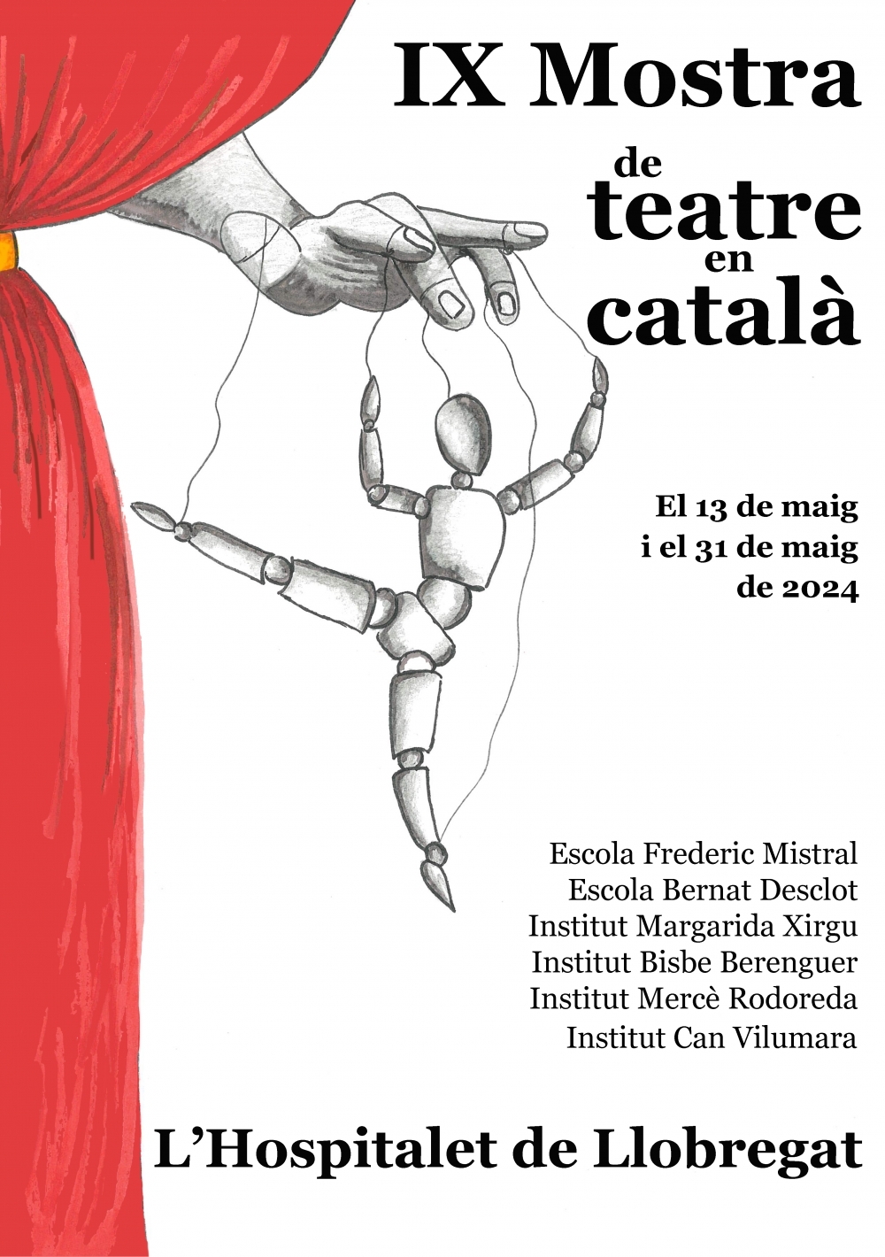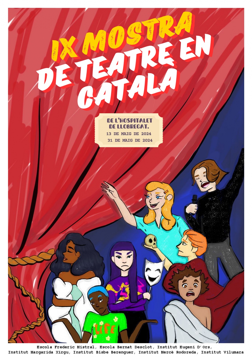 L’alumnat de 1r de batxillerat artístic ha participat, per segon any, en l’elaboració dels cartells de la IX Mostra de Teatre en català de l’Hospitalet de Llobregat.
