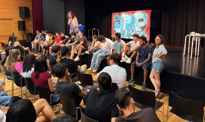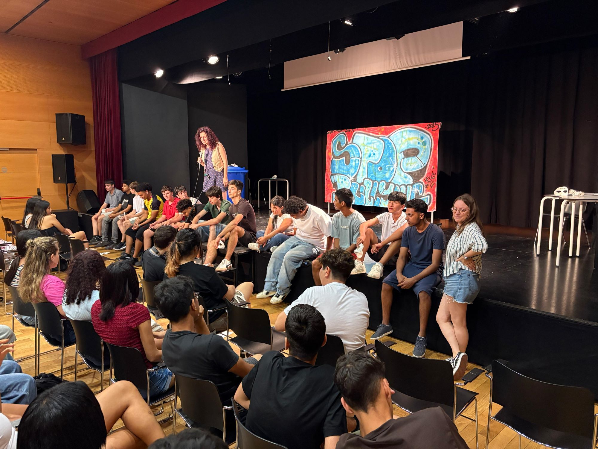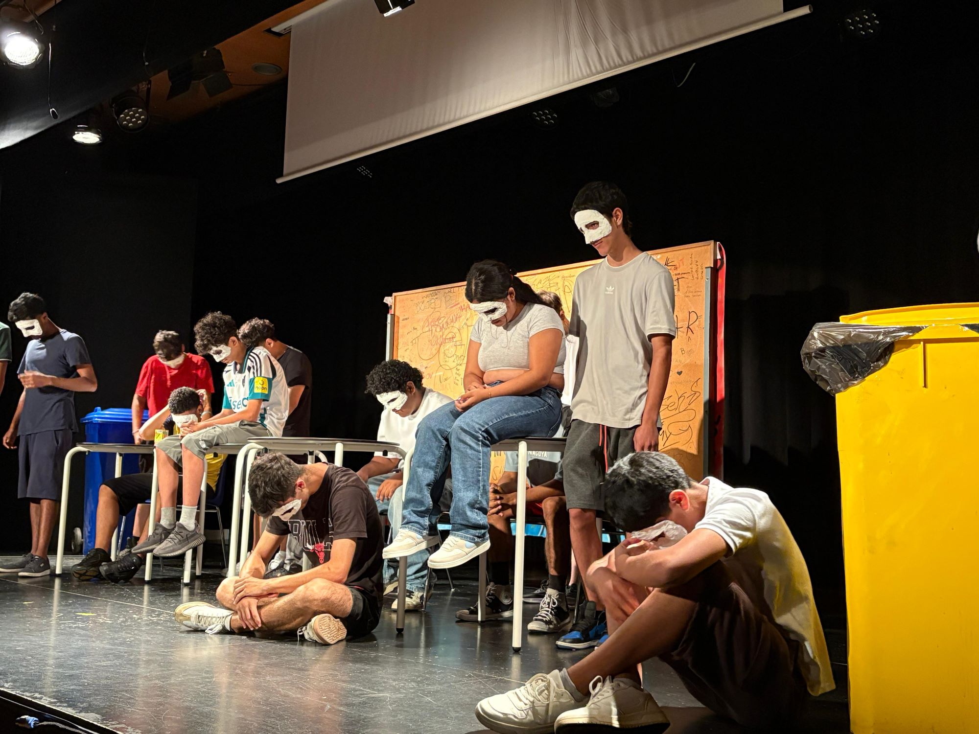 Com ja és tradició a l’Institut Bellvitge, aquest mes de juny, l’alumnat de 4t d’ESO ha estrenat “Sense profes”, una obra de teatre creada des de zero durant el curs acadèmic 24-25. Aquest any, l’obra s’ha centrat en visibilitzar diferents formes d’assetjament escolar que poden tenir lloc dins l’aula quan el professorat no hi és present.