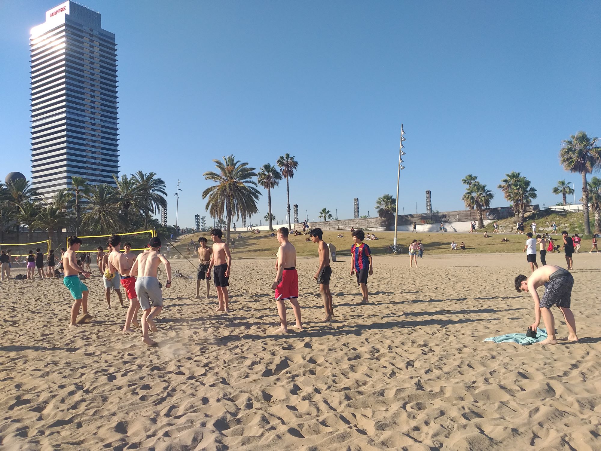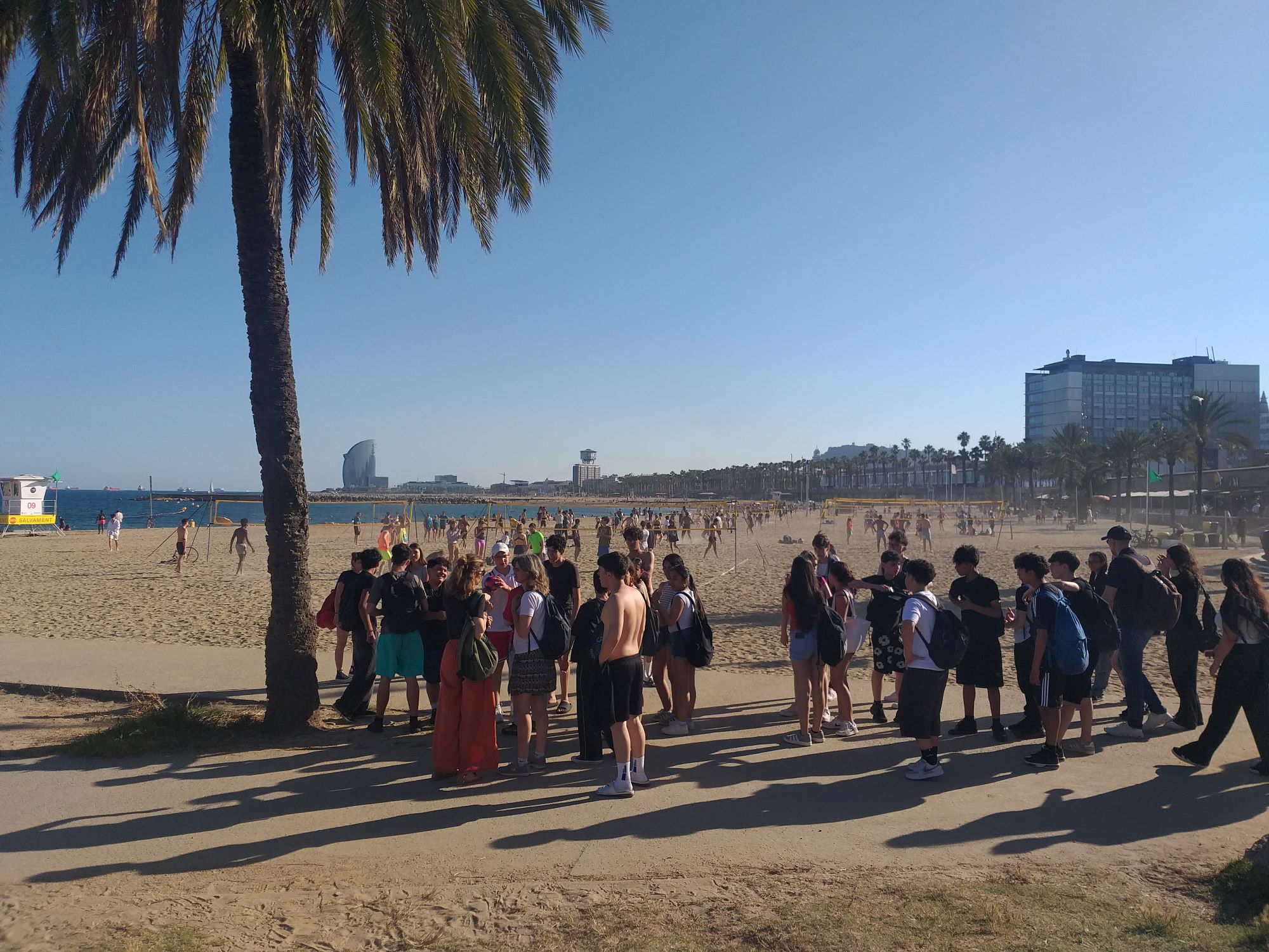 Com no podia ser d’una altra manera en aquest tipus de projectes internacionals, cada dia vam fer sortides plegats: dilluns vam fer una visita guiada per Bellvitge i vam sopar al Cafè l’Artesà, al Prat del Llobregat; dimarts vam visitar la Sagrada Família, la Barcelona Modernista i el Barri Gòtic (vam veure la Pedrera, la Casa Batlló, el Palau de la Música, la Catedral, la Plaça Sant Jaume i la Plaça Reial); dimecres vam anar al Parc Güell, dijous vam anar a veure una exhibició de moltes colles universitàries de castellers al campus de Ciutadella la Universitat Pompeu Fabra i, des d’allà, vam anar a la Vila Olímpica, on els alumnes van gaudir de la platja.