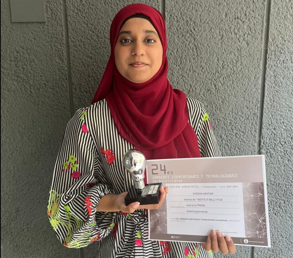 Ayesha Akhtar, alumna de 2n de batxillerat de l’itinerari científic de l’Institut Bellvitge, ha obtingut el 2n premi al millor