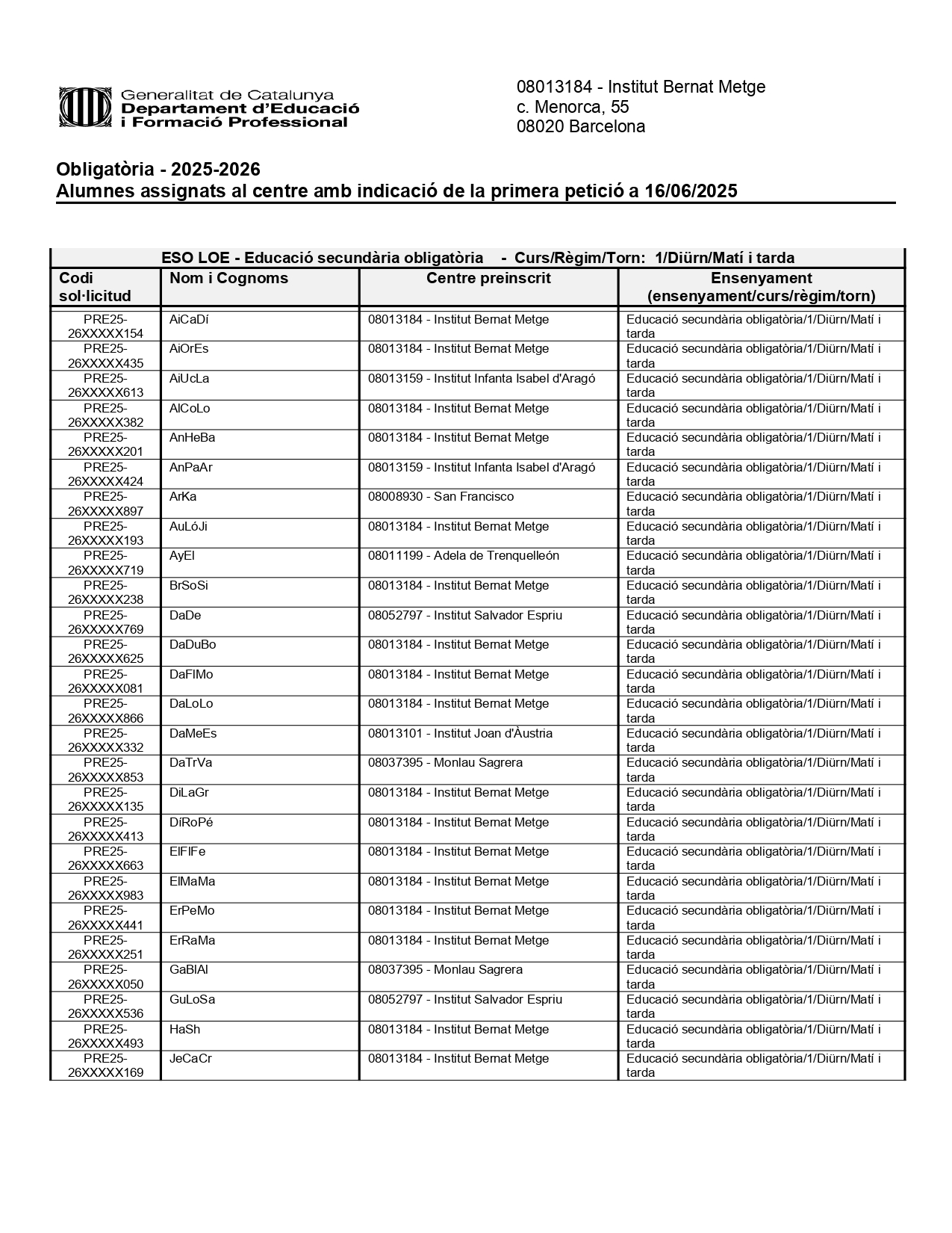 Aquest és un document de l’alumnat assignat al centre. Si ets una família que has estat assignada a l’INSTITUT BERNAT METGE, aquest és el teu document.