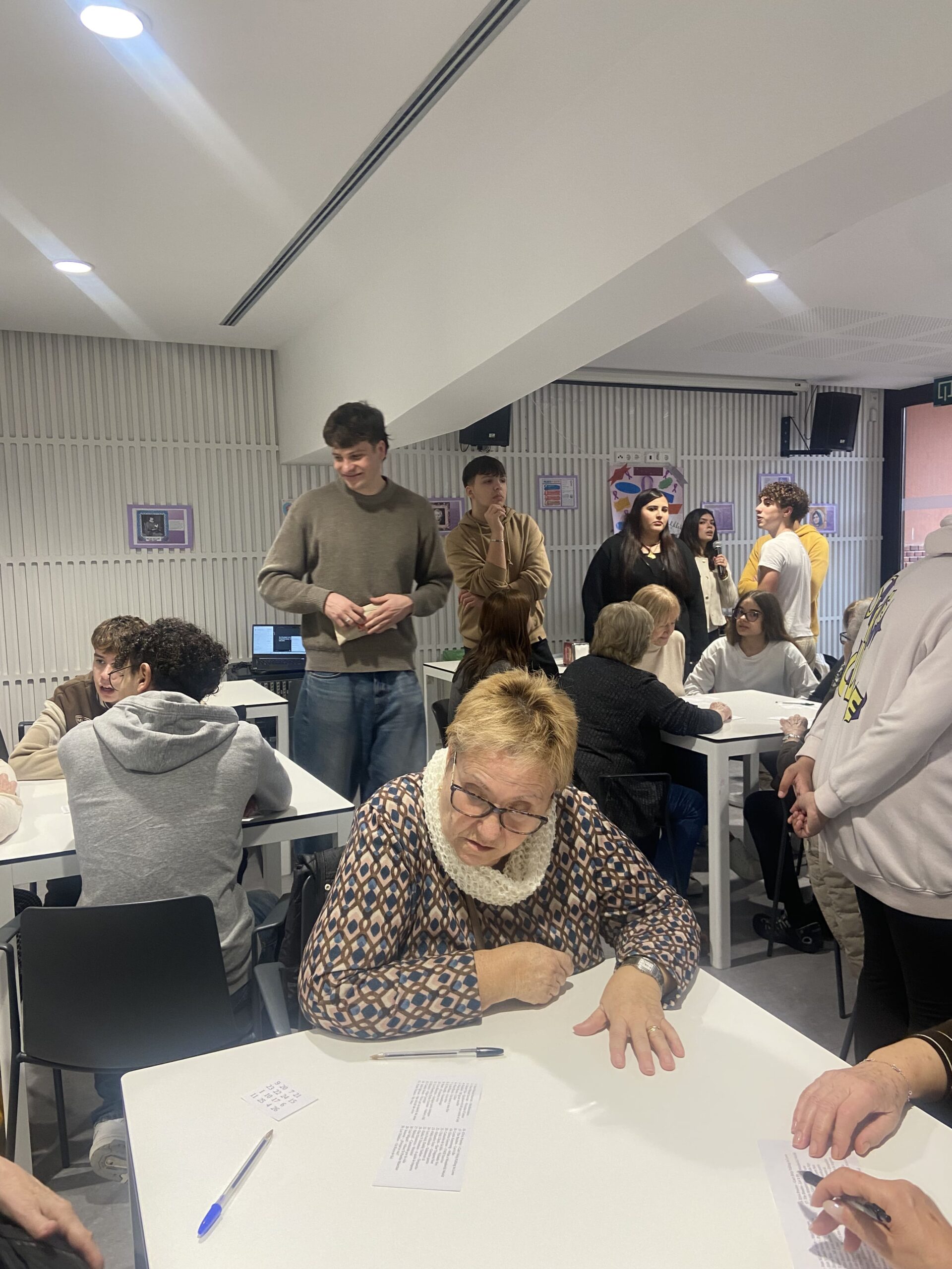 El proppassat 20 de Març i desde l’àrea d’Economia Bàsica de 4t d’ESO, el nostre alumnat i emmarcat en el projecte que es duu a terme de Microcooperatives, on la Missió busca crear un espai d’entreteniment per a totes les edats i, fomentar la connexió intergeneracional i el benestar emocional a través de la música i activitats lúdiques, ha portat a terme la Visió amb un bingo musical amb tota la comunitat del Casal de Gent Gran de la Verneda Alta.
