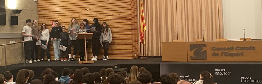A l’institut Joaquim Blume, ens hem reunit la comunitat educativa a la sala d’actes Rafael Nebot del Consell Català de l’Esport, per tal de fer una lectura d’alguns dels articles de la Declaració Universal dels Drets Humans amb algunes de les llengües que es parlen al centre.