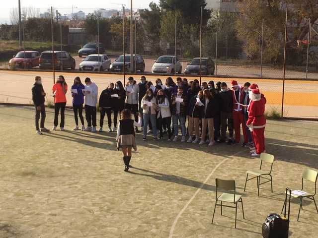 Dimarts 21 de desembre, l’alumnat que ha assistit a l’institut ha participat de les activitats que hem preparat aquests dies. En principi, teníem previst realitzar aquesta celebració a la sala d’actes, però a causa de la situació sanitària es va decidir de fer l’activitat de manera telemàtica (gravacions d’activitats, el megakahoot,…) i, en acabat, passar a les pistes per fer les activitats musicals previstes.