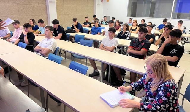 La presentació s’ha portat a terme a la sala taronja, per a l’alumnat de 1r curs i a l’aula d’informàtica per al de 2n, ja que la sala d’actes està tancada de manera indefinida.