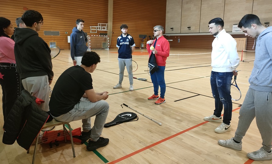 La jornada va consistir en una xerrada informativa de sensibilització cap al col·lectiu amb discapacitat visual, seguit d’una part pràctica en què el nostre alumnat va poder descobrir i practicar diferents esports adaptats com ara el Blind-Tennis, el Tandem (ciclisme) i l’atletisme per a persones amb discapacitat sensorial visual.