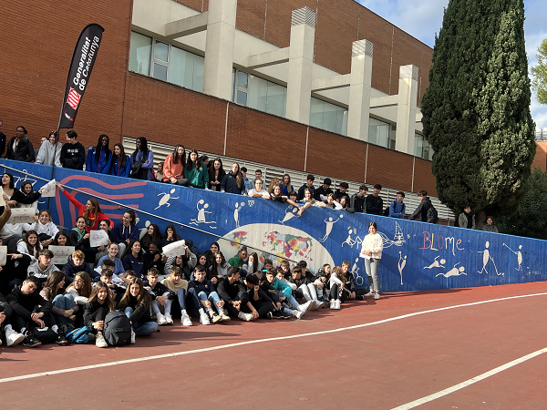 La lectura pública del manifest s’ha realitzat, a les 11.45h, en acte institucional amb la presència del Sr. Aleix Villatoro, director del Consell Català de l’Esport; la Sra. Blanca Nualart, responsable en Matèria de Gènere i Programes Esportius Transversals del CCE; l’equip docent i l’alumnat de l’institut Joaquim Blume davant les escales del poliesportiu.