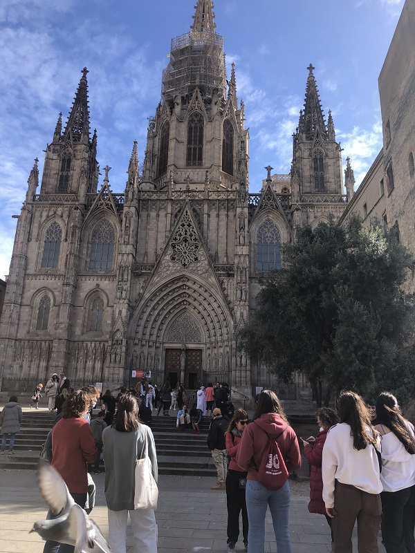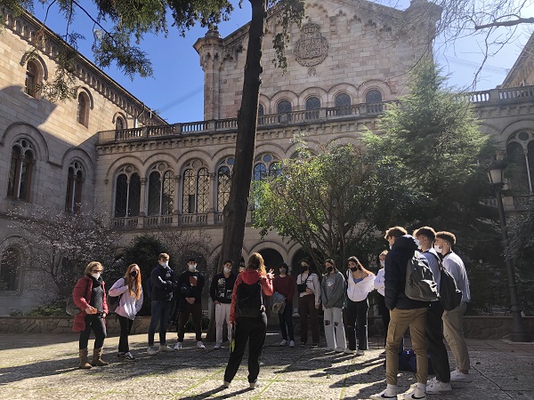 Al llarg de dues hores, l’alumnat de 2n de batxillerat i el professorat acompanyant hem passejat pels escenaris principals del llibre de Carmen Laforet de la mà de la nostra guia, la Marga Arnedo. Hem començat a l’edifici històric de la Universitat de Barcelona, hem seguit pel Seminari Conciliar, el carrer d’Enric Granados amb els edificis d’arquitectura modernista, passant per la parròquia de Sant Gaietà fins arribar al número 36 del carrer d’Aribau on trobem la placa homenatge a Carmen Laforet, ja que aquí es comença i transcorre el temps que narra l’Andrea, protagonista de l’obra.