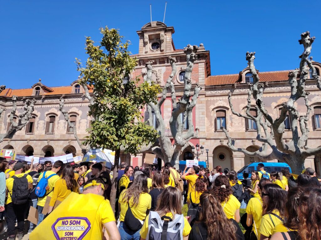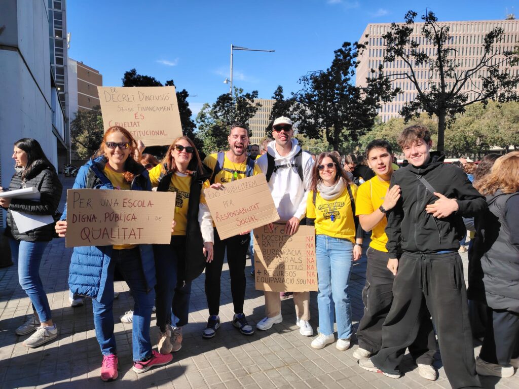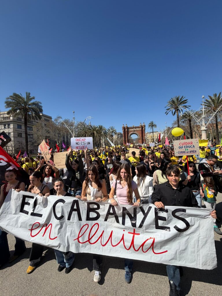 Avui, 20 de març, el professorat i part de l’alumnat del Cabanyes s’han sumat a la vaga docent en defensa d’una educació pública de qualitat. Hem participat a la mobilització a Barcelona, juntament amb milers de docents d’arreu de Catalunya, en una marxa que ha acabat davant del Parlament.