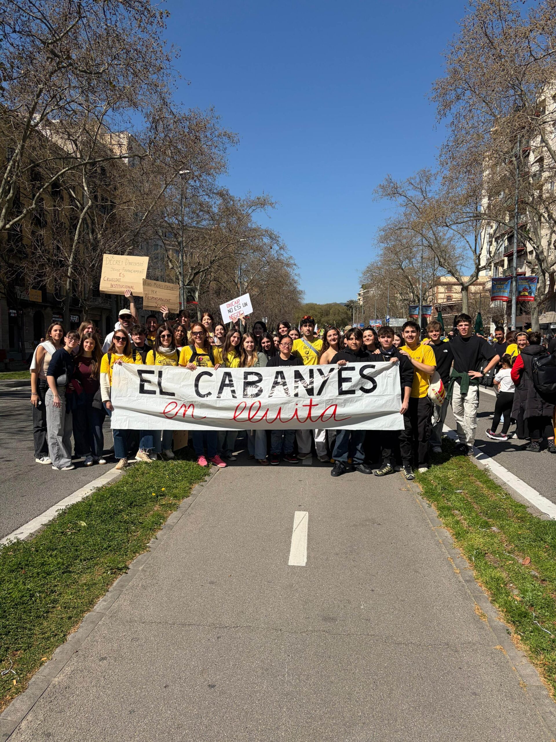 Avui, 20 de març, el professorat i part de l’alumnat del Cabanyes s’han sumat a la vaga docent en defensa d’una educació pública de qualitat. Hem participat a la mobilització a Barcelona, juntament amb milers de docents d’arreu de Catalunya, en una marxa que ha acabat davant del Parlament.