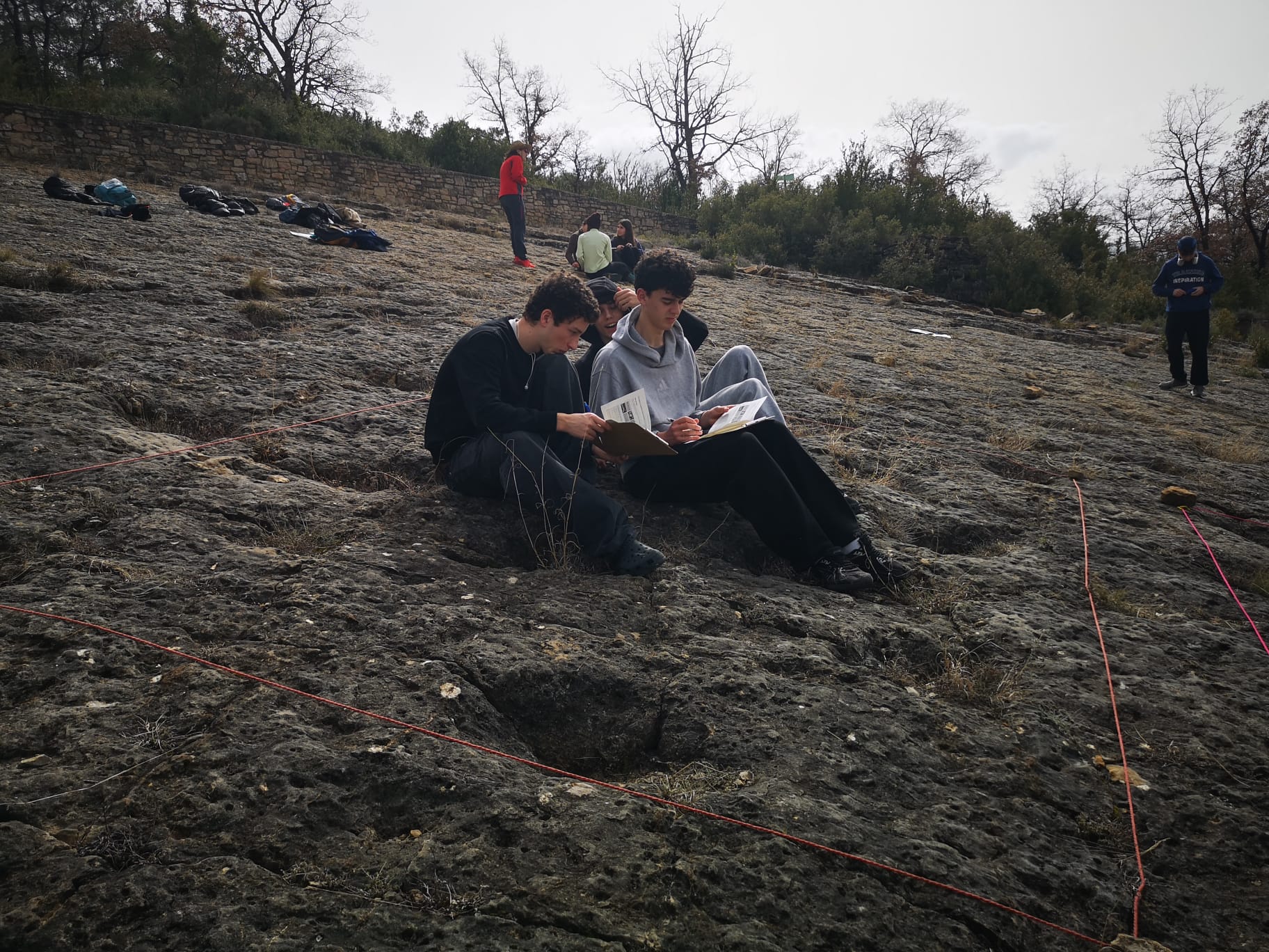 Ahir l’alumnat que participa en el treball de camp a Tremp va completar la primera jornada d’activitats amb una intensa experiència d’aprenentatge sobre el terreny. Durant el matí, els alumnes van poder llegir a les roques el testimoni del passat natural de la zona. Al llarg de la sortida van observar diferents formacions geològiques i evidències del passat prehistòric del territori, com mantes ratjades amb forats practicats a la sorra i petjades de Tiranosaure. A la tarda, el treball es va centrar en l’estudi del medi natural actual. L’alumnat va analitzar la qualitat de les aigües del riu Flamisell, aplicant procediments d’observació i anàlisi propis del treball científic de camp. Amb aquesta primera jornada es va donar el tret de sortida a uns dies de treball intens fora de l’aula, que permeten connectar els continguts treballats al centre amb l’observació directa del territori.