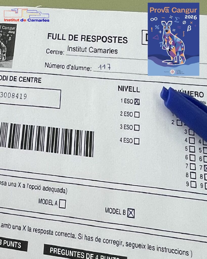 El passat dijous els alumnes de l’ESO de l’Institut de Camarles van participar en la 31a Prova Cangur, organitzada per la Societat Catalana de Matemàtiques, una activitat individual pensada per promoure les matemàtiques entre la gent jove.