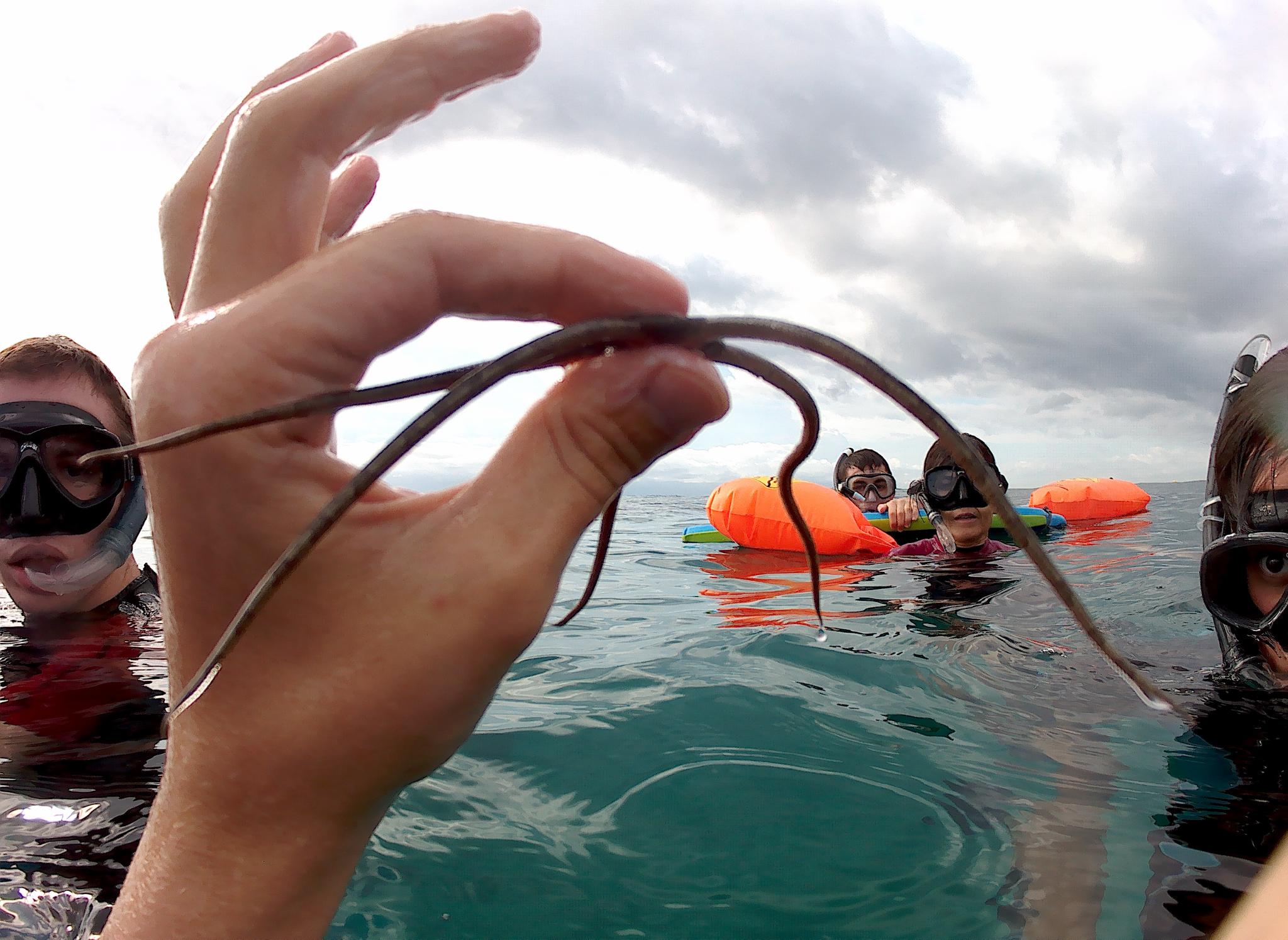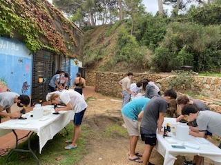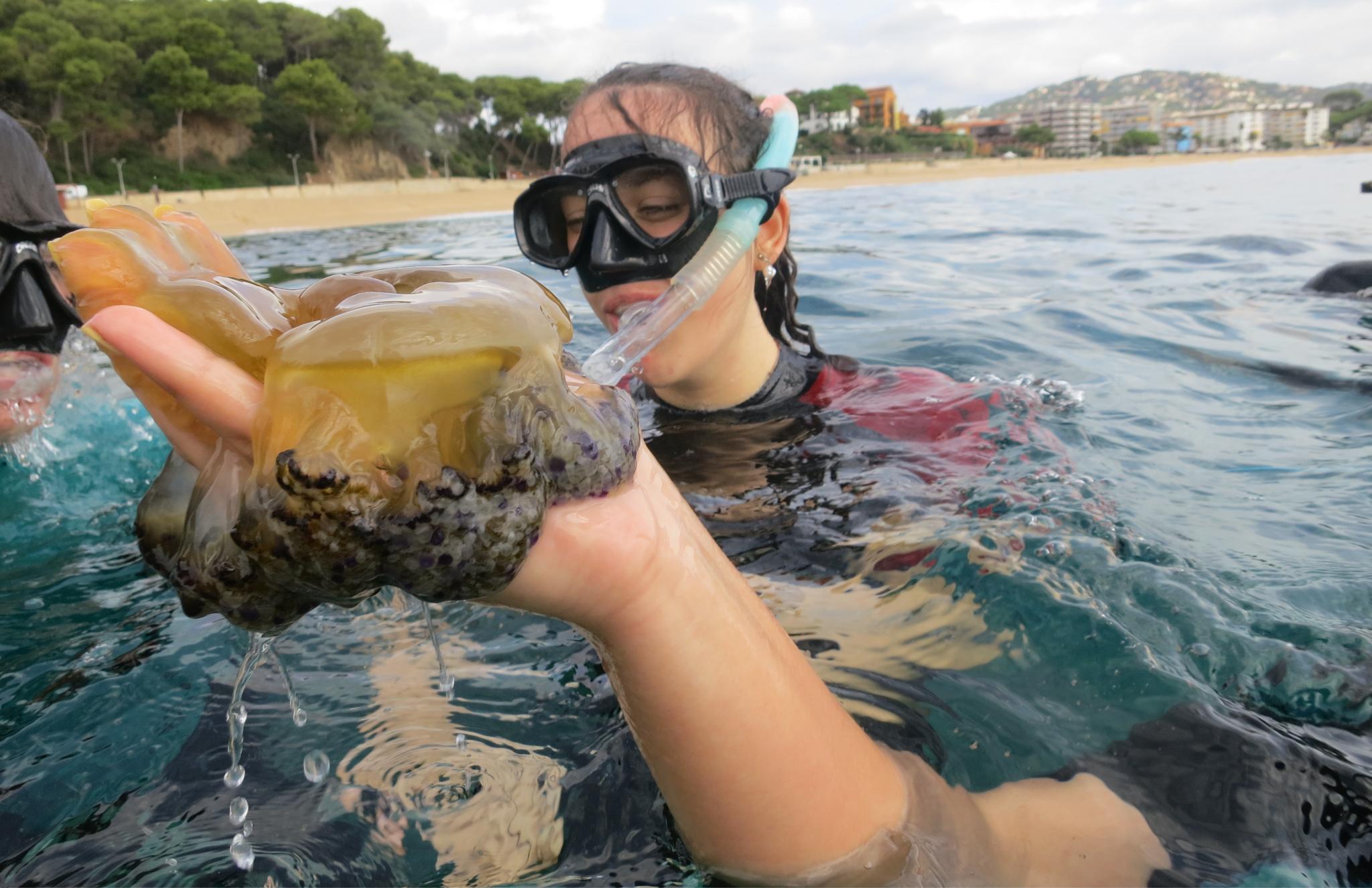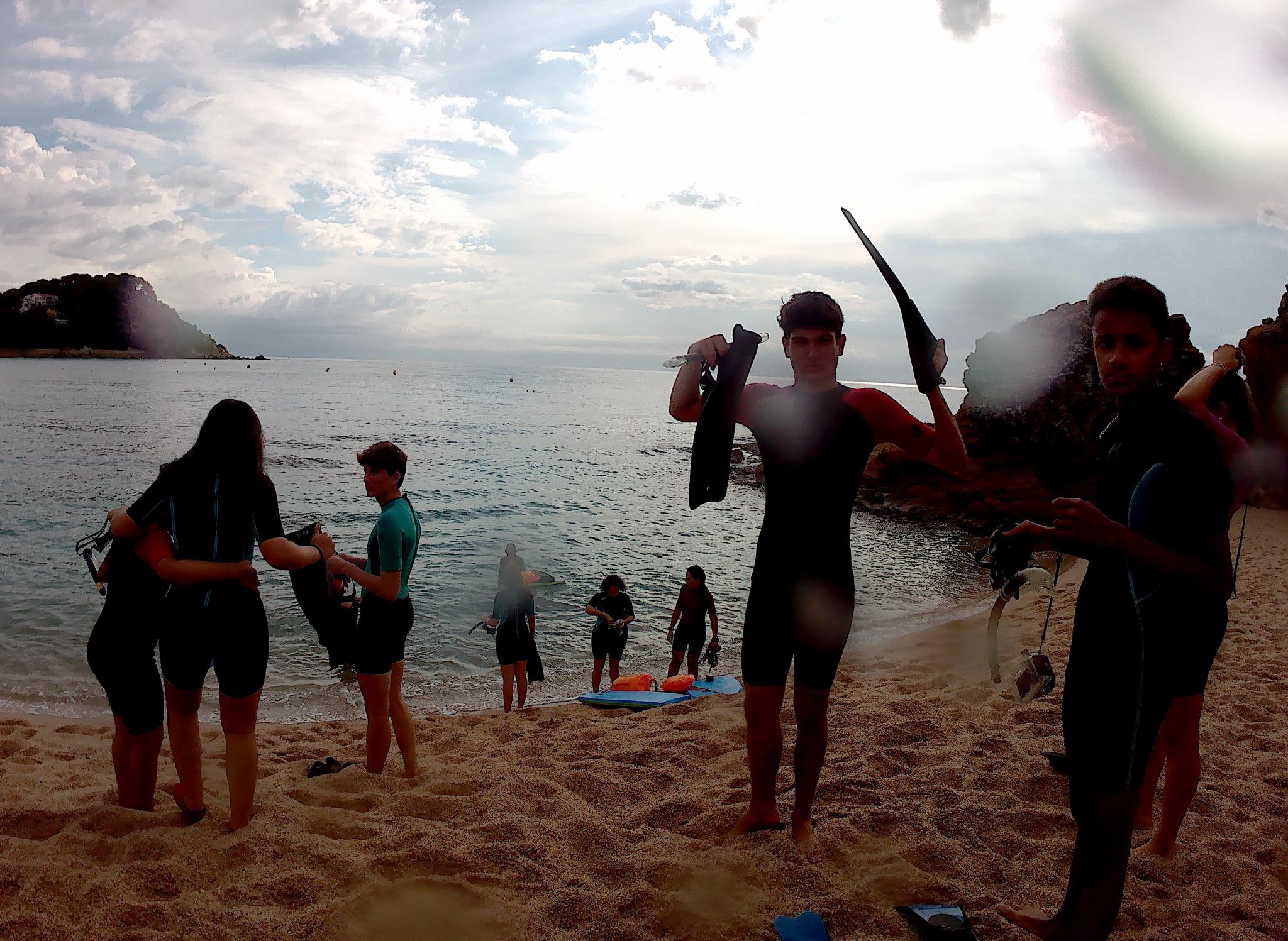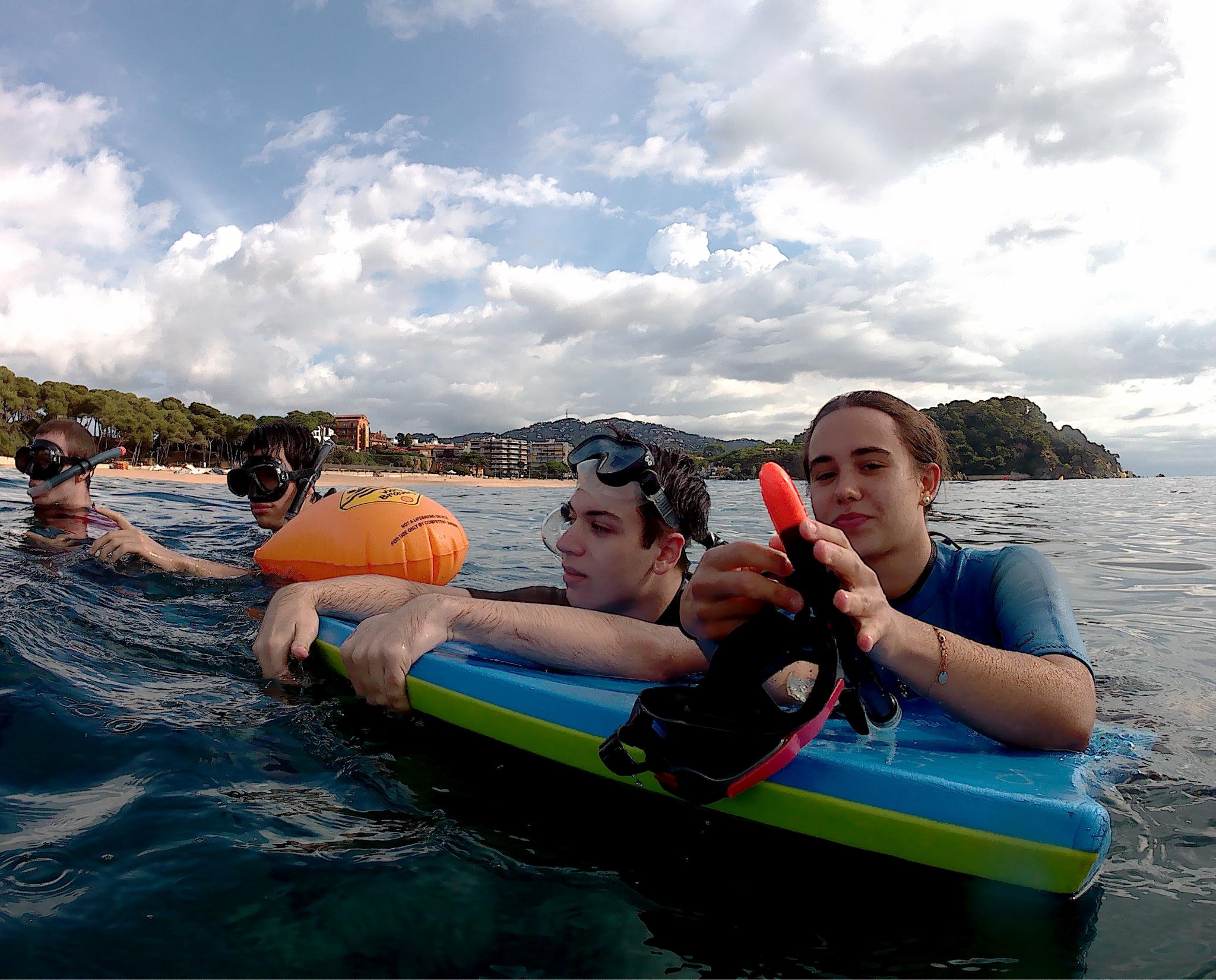 El dia plujós no va espatllar una jornada que va començar amb l’activitat d’snorkel amb l’acompanyament d’una guia especialitzada en biologia marina que els va permetre gaudir del fons marí de la platja de Fenals descobrint els organismes que hi viuen. Després d’esmorzar van realitzar un taller de biologia marina que va consistir en una sortida a les roques per recollir mostres d’aigua i d’organismes per tal d’observar-los de ben a prop amb lupes binoculars i poder identificar-los amb l’ajuda de guies i amb les explicacions de l’educadora mediambiental especialitzada en biologia marina.