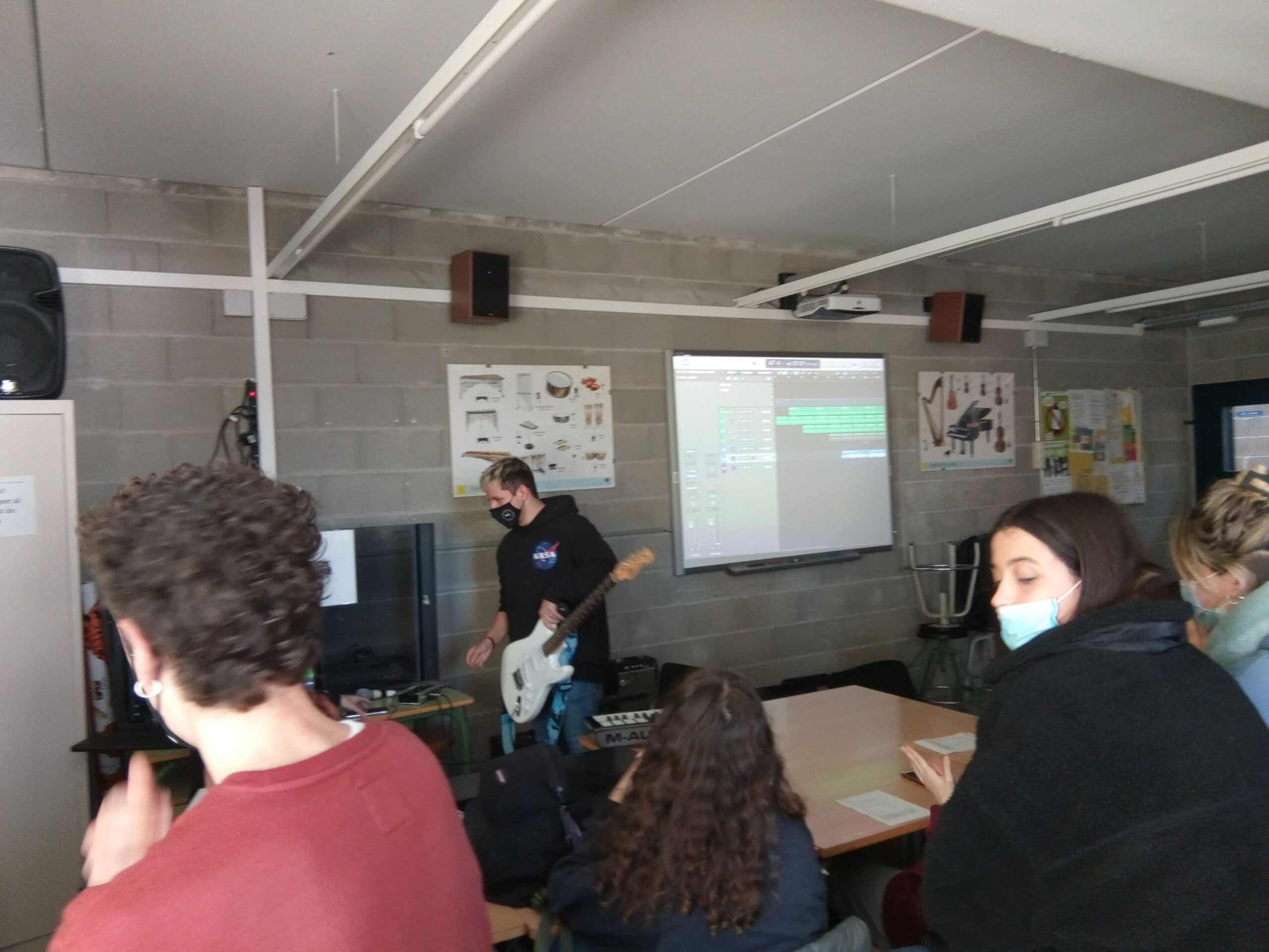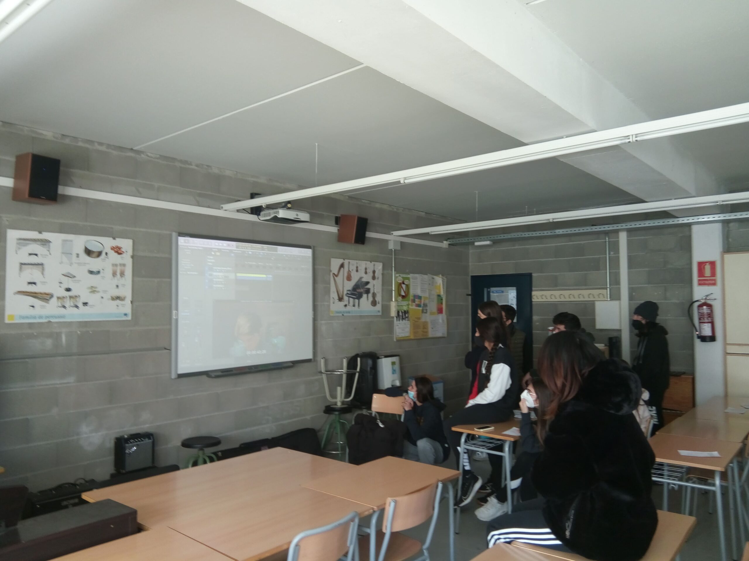 El divendres passat els alumnes de les optatives de pràctica musical de primer i segon de batxillerat d’arts escèniques van poder assistir a dos tallers de so. Un va ser de disseny sonor on van crear els sons per a seqüències de pel·lícules i van poder experimentar i comprovar la importància dels efectes de so en les produccions audiovisuals.