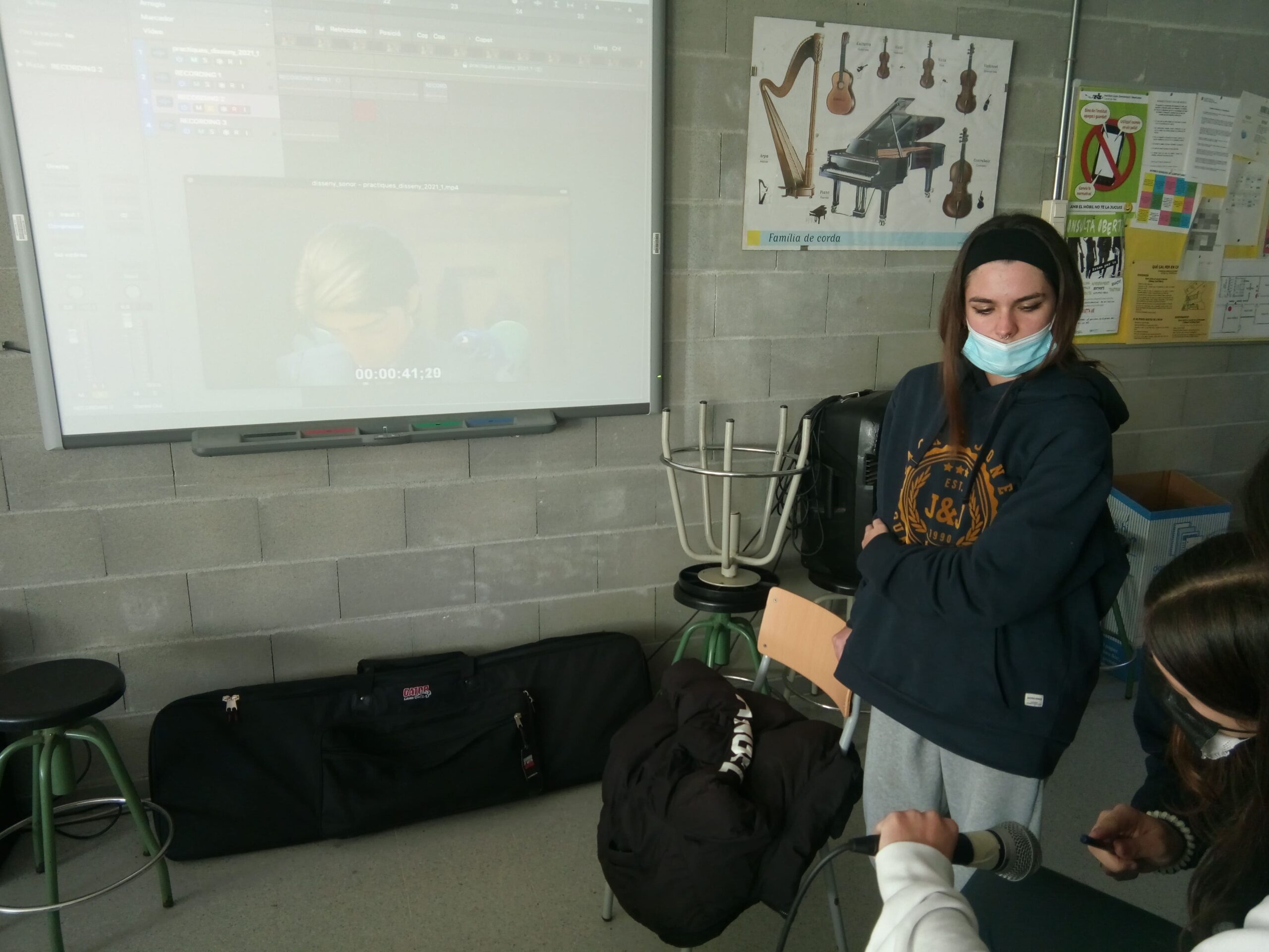 L’altre va ser de producció sonora i en menys d’una hora les alumnes de segon van fer una petita producció musical entre totes que va sorgir de forma molt espontània i on algunes de les persones del grup van fer creacions al moment.