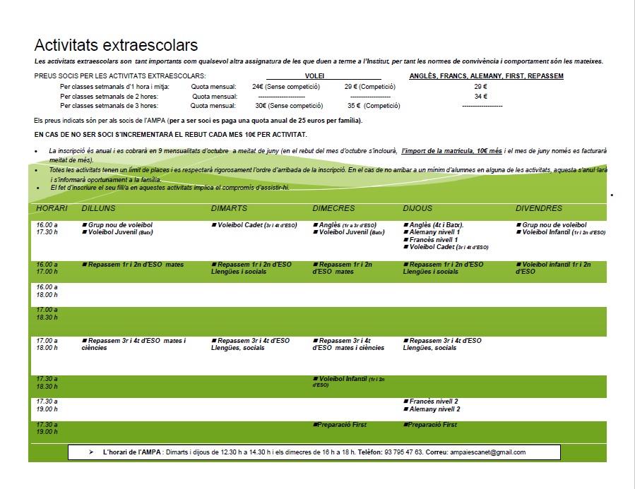 • Horari extraescolars