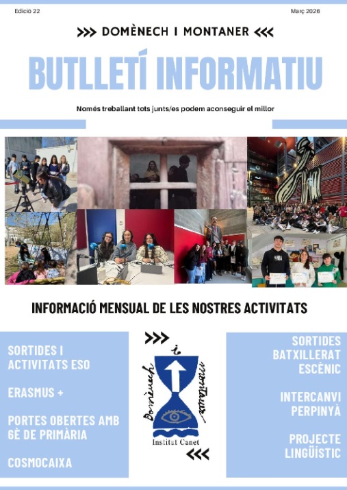 24/05/19Cantar gòspel alegra la vida, perquè qui canta, els seus mals espanta. Ho saben els alumnes de 1r i 2n d’ESO que han fet un taller a l’institut amb la Sònia Moreno. Han preparat el concert que realitzaran al Teatre Zorrilla de Badalona el proper diumenge 2 de juny, titulat Weclap gòspel rap!… Llegeix més»