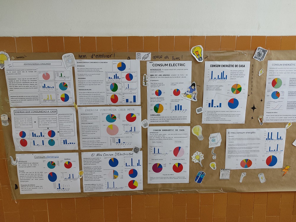 Aquesta setmana, amb motiu del dia mundial del medi ambient que se celebra el 5 de juny, podeu trobar exposats pel centre els treballs de l’alumnat de 2n d’ESO sobre el consum energètic a la llar. En aquest treball, han analitzat el consum elèctric dels llums i aparells de casa seva, fet que els hi ha permès reflexionar sobre l’ús de l’energia elèctrica i detectar quines accions els permetrien ser més eficients i sostenibles!
