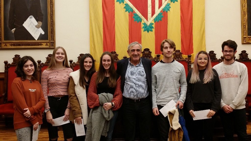 L’alcalde de Terrassa, Alfredo Vega, acompanyat de membres de la Corporació Local, va presidir dilluns 19 de novembre passat  l’acte de lliurament de beques d’estudi a alumnes de secundària i Batxillerat del curs 2017-2018. En total es van lliurar 22 ajuts per a estudiants de 4t d’ESO i 17 ajuts per a alumnes de 2n de Batxillerat.
