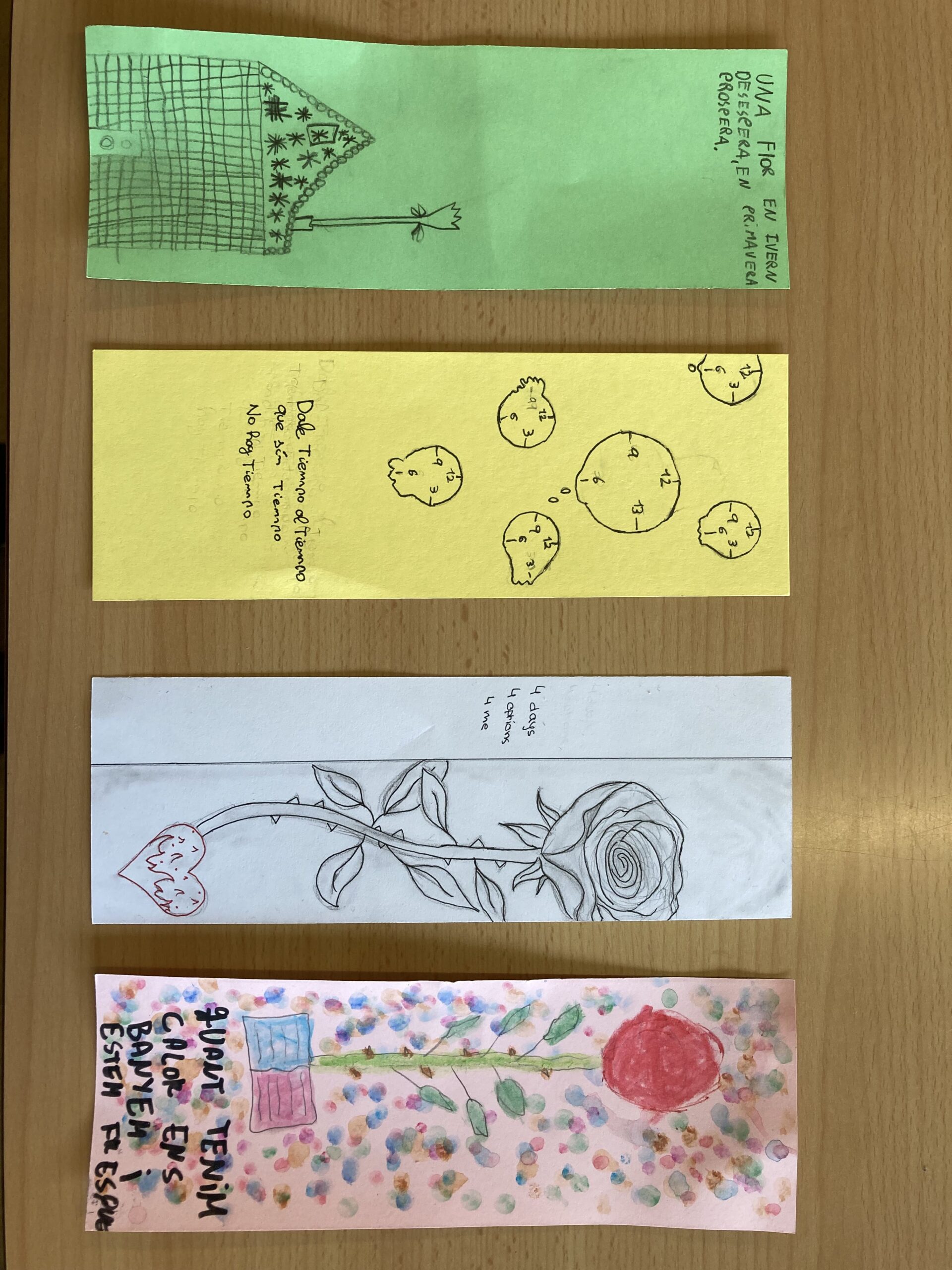 Durant el matí s’han realitzat diversos tallers, com el de Haikus amb els alumnes de 1r d’ESO o el de punt de llibre de fusta amb 2n i 3r d’ESO.
