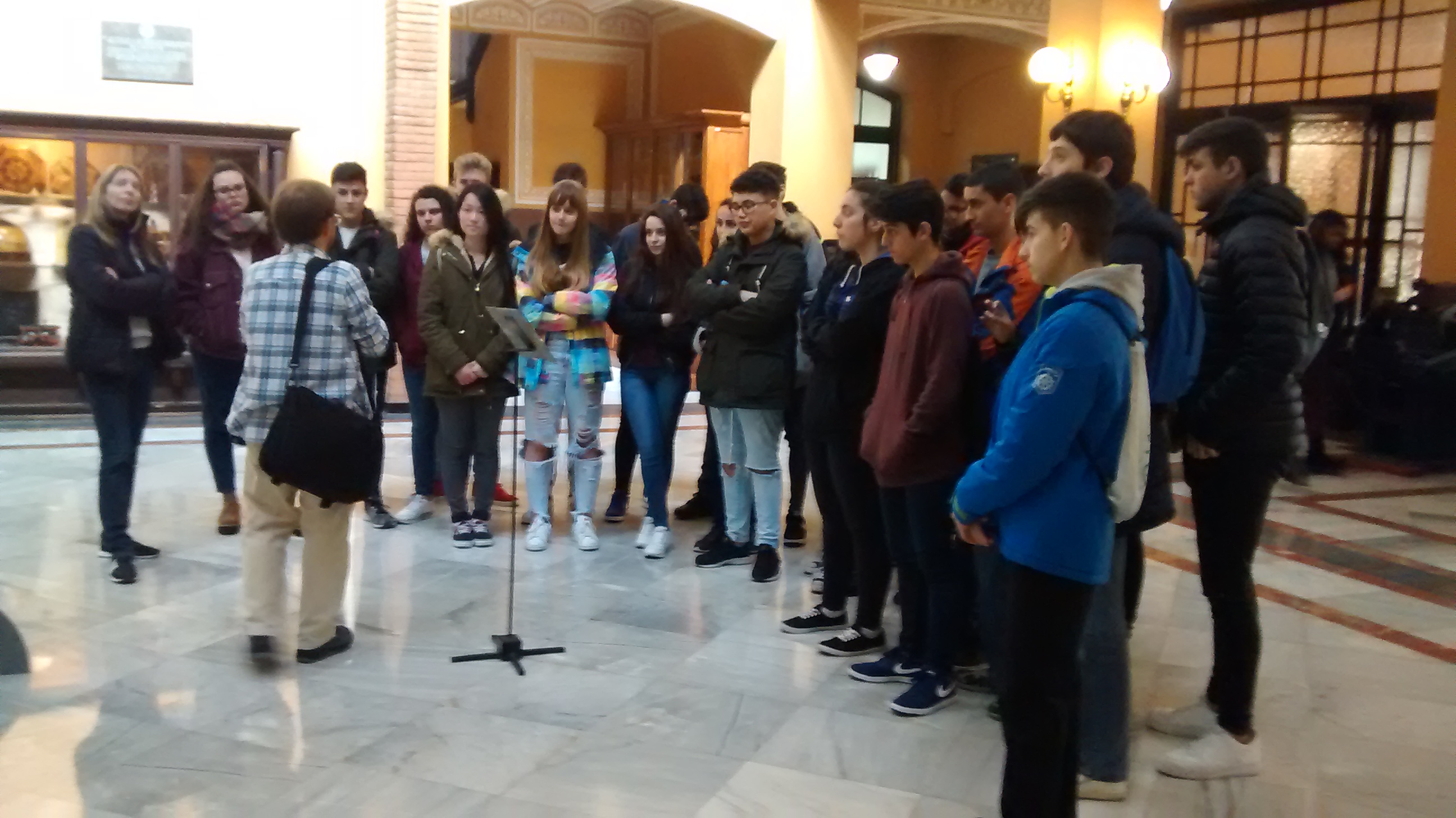 Primer va fer una introducció al mateix vestíbul del centre explicant una mica la historia i els inicis del centre. A continuació vam anar a la Sala d’Actes fent un recorregut per diferents espais del centre (biblioteca, taller, etc). A la Sala d’Actes ens va explicar per sobre l’oferta dels diferents CFGM i CFGS que tenen a l’Escola.