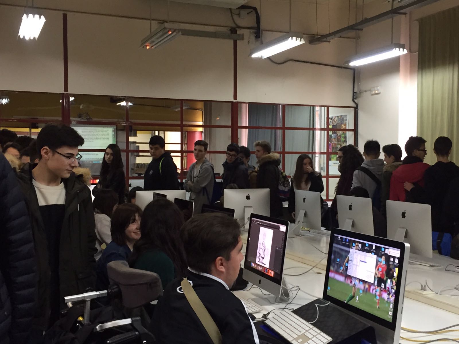 Després varem iniciar un recorregut per diferents espais on els alumnes i professors estaven fent classes de diferents cicles, tant de Grau Mitja com de Grau Superior de diverses famílies professionals. Els alumnes feien les seves feines mentre els professors ens explicaven el currículum i les sortides dels estudis que vam visitar ( Mecanització, Operacions de laboratori, Preimpressió digital, Soldadura i caldereria, Projectes d’edificació, Disseny i gestió de la producció gràfica, etc.).