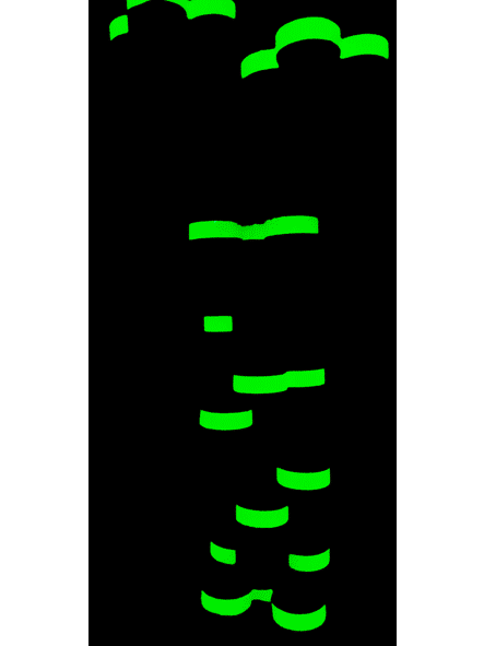 La tercera peça pren una disposició impossible vertical. La torre romboïdal construïda amb llaunes de begudes s’eleva en una maniobra circense i dibuixa a la foscor, el ritme luminescent de les seves ondulacions.