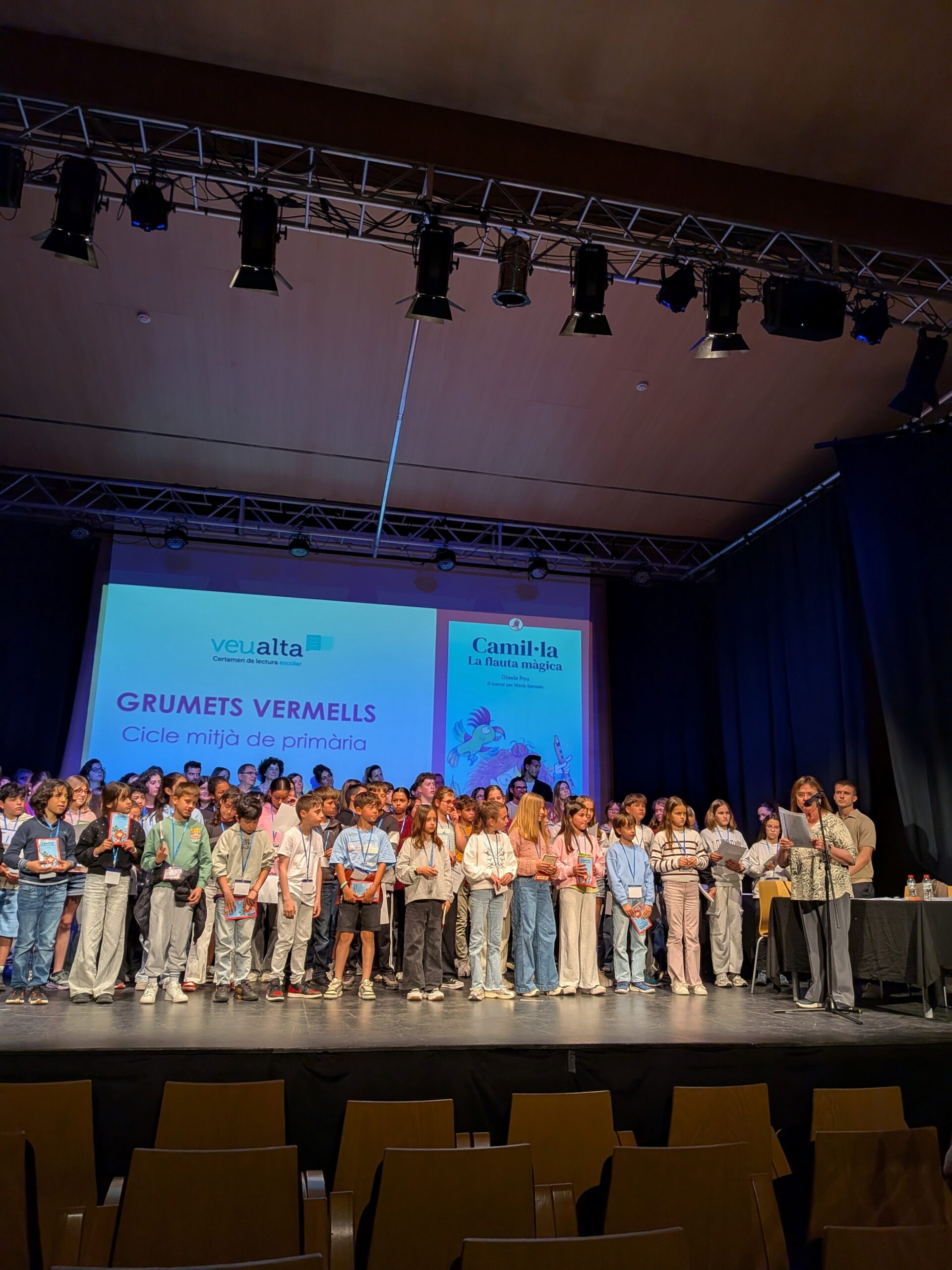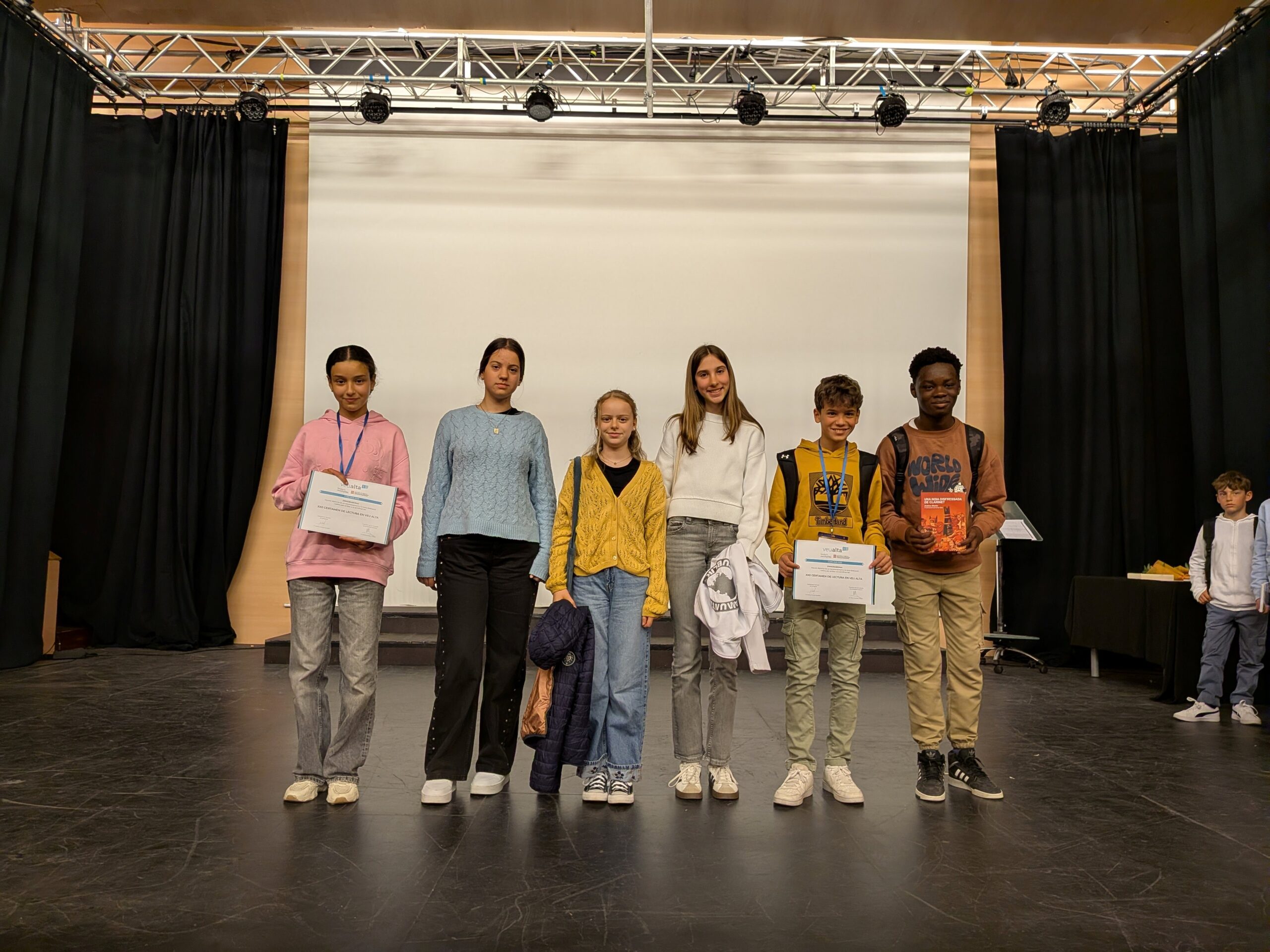 La localitat de Santa Coloma de Farners va acollir, el matí del dijous 9 d’abril, una nova edició del Certamen de Lectura en Veu Alta (CLVA), on en Pau Carreras i la Khadija Bensada, de 1r d’ESO, van representar el nostre institut en les categories Corsaris (alumnat del primer cicle d’ESO) i Timoners (alumnat nouvingut de cicle superior de primària i primer cicle d’ESO). Altres nois i noies del seu curs també van poder assistir a l’acte com a acompanyants. L’esdeveniment va comptar amb la participació d’alumnat procedent de diverses escoles i instituts de la comarca de La Selva, creant un ambient enriquidor per celebrar la passió per la lectura i la capacitat d’expressió oral.