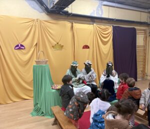 Tres alumnes de 4t ESO del nostre Centre (Sílvia, Oriol i Jana), van anar a fer de patges reials per rebre els alumnes de l’escola Gaspar de Queralt d’educació infantil i cicle inicial. Van fer que els alumnes més menuts passessin uns moments de màgia i il·lusió. També han recollit les cartes que han escrit entre tots i totes.