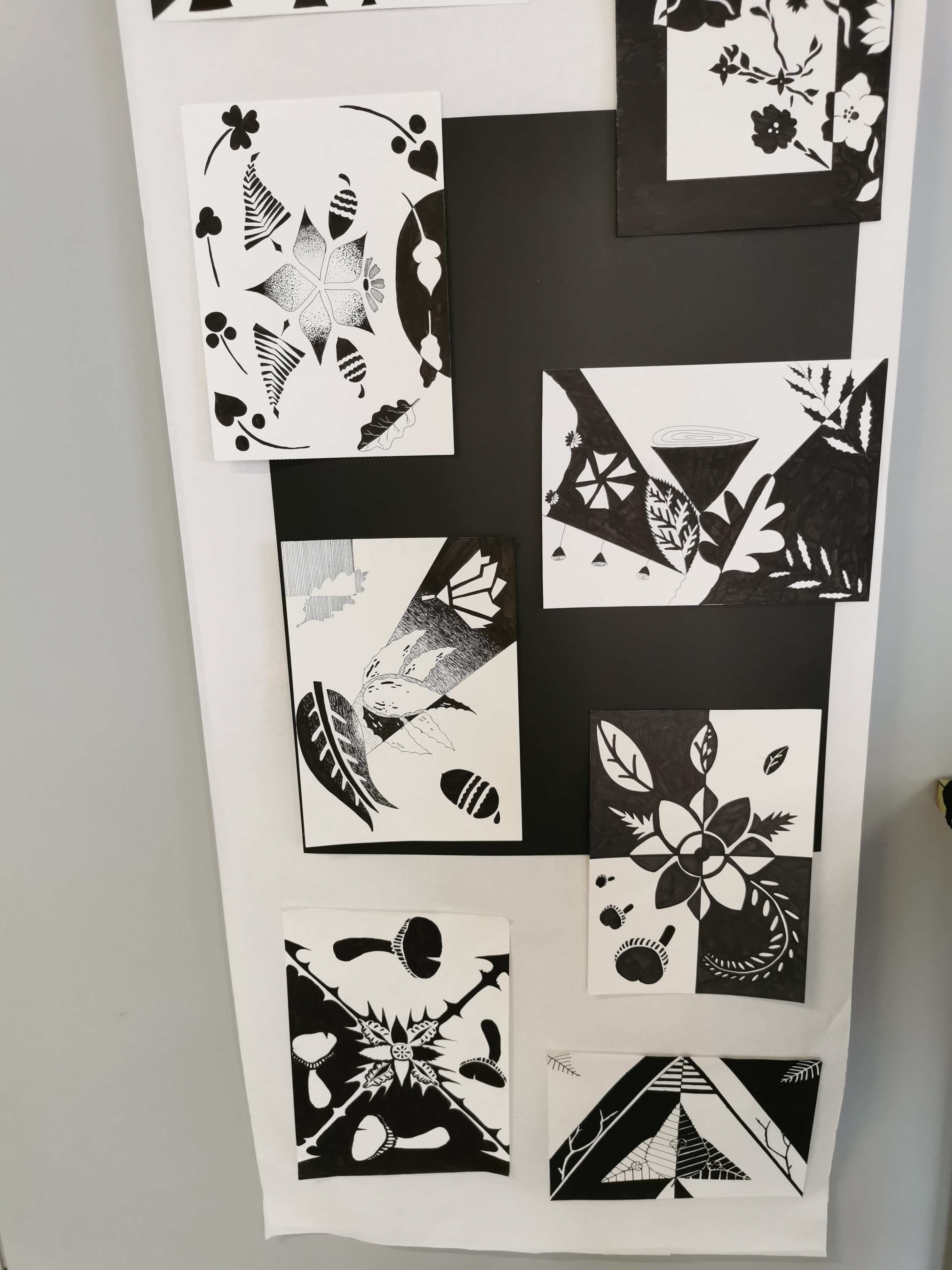 La combinació de blancs i negres amb diferents textures pintades amb retoladors negres de diferents