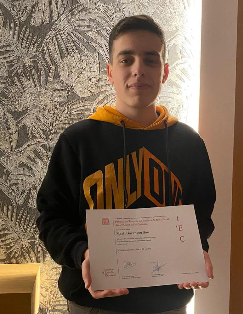 En Martí Garangou Sau, que el curs passat feia 2n de Batxillerat científic al nostre Centre va presentar-hi el seu treball que porta per títol «Processos científics a la cuina» tutoritzat per la professora Margarita Cargol Cortada, va quedar finalista i va ser distingit amb la participació en una activitat científica virtual.