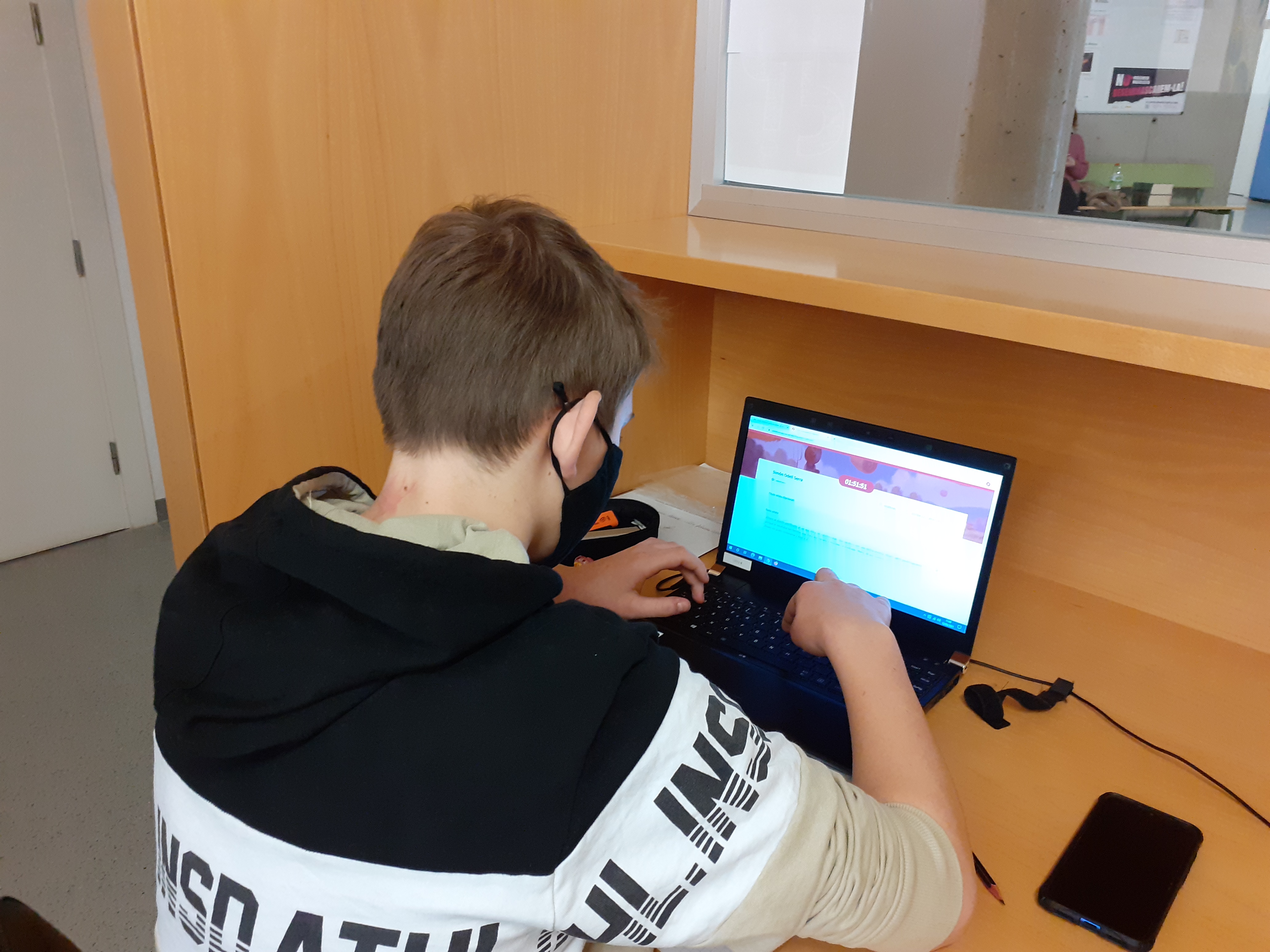La víspera del concurso hubo que confinar a todos los alumnos de 2º B a causa de un caso positivo de covid-19. El mismo día 12, a las diez treinta, se hicieron la PCR en el instituto. Empezó entonces para Aina y Martí una verdadera maratón: PCR, vuelta a casa para poder conectarse a tiempo e introduir los códigos para acceder a la plataforma digital …..