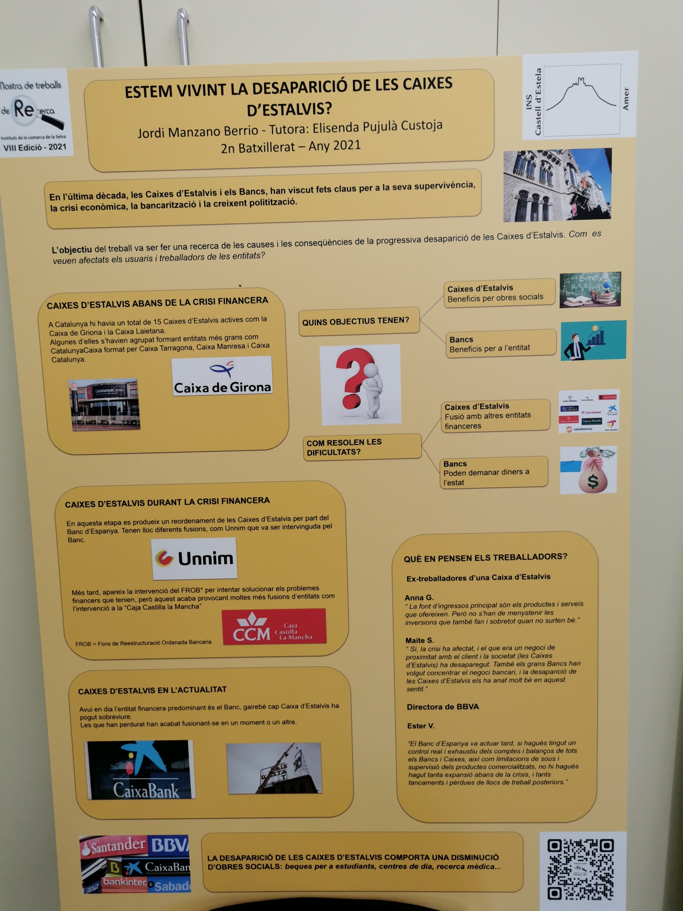 - Jordi Manzano i Berrio amb el treball de títol: Estem vivint la desaparició de les caixes d’estalvis?
