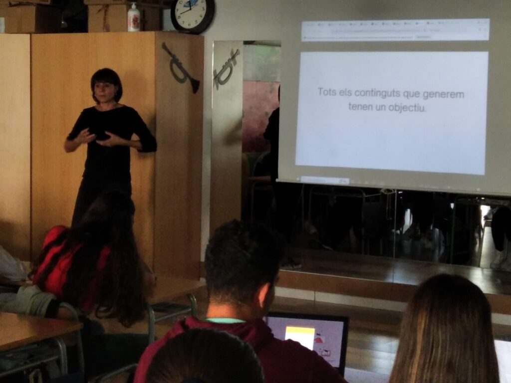 Aquesta setmana els alumnes de 1r de batxillerat de l’optativa de Comunicació Audiovisual van rebre la visita de Cristina Colls, responsable de comunicació de l’Ajuntament de Castelló d’Empúries. L’objectiu de la sessió era que els expliqués el dia a dia de la seva feina i que els alumnes coneguessin com es plantegen i gestionen les diverses campanyes de comunicació del consistori.