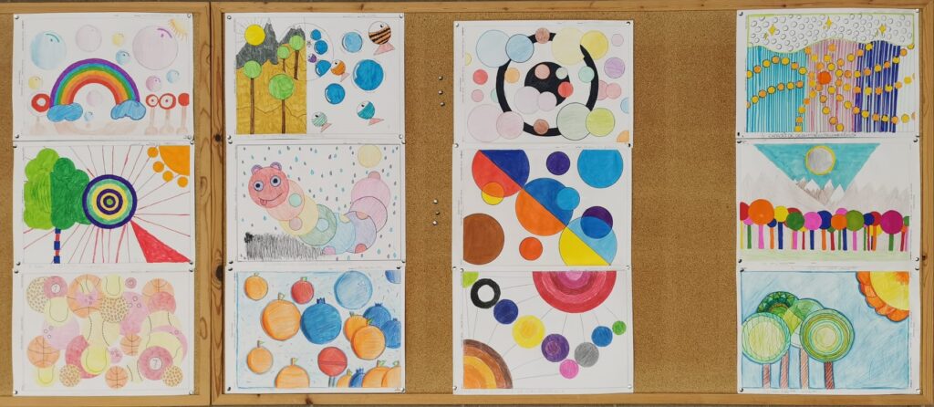 Creacions amb circumferències Jaume J04/02/26 L’alumnat de 1r d’ESO ha après a fer ús del compàs i a compondre amb ell. Han fet un dibuix amb circumferències de diferents radis. Algunes són composicions figuratives i d’altres són abstractes. Les han pintat amb llapis de colors i/o retoladors.