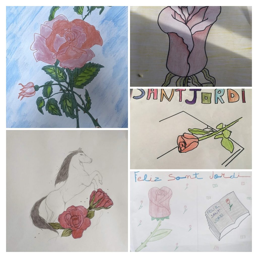 Els alumnes de primer d’ESO han dibuixat roses per felicitar a tots el dia de Sant Jordi. I per fer-les arribar a les persones que més s’aprecien, aquelles que tenen ara més a prop o bé a aquelles de qui ara es veuen separats pel motiu que tots coneixem.