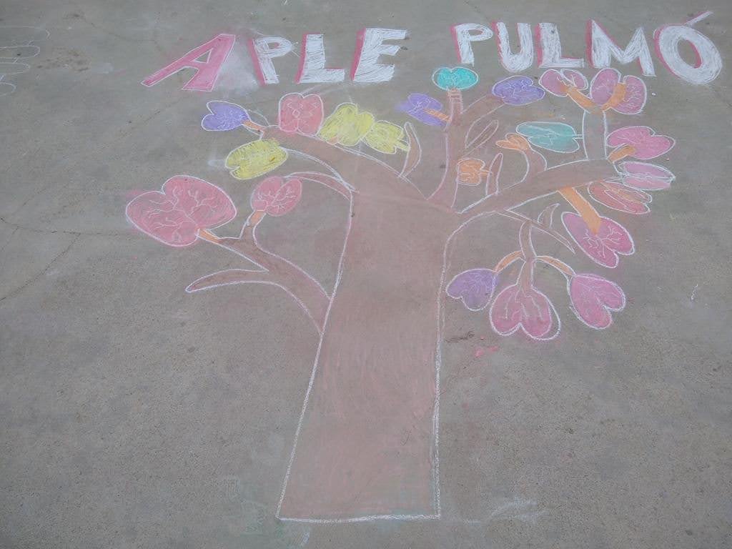 La matèria d’Educació visual i plàstica ha organitzat la tasca per tal que cada grup dibuixi al pati les seves idees amb guixos de colors. Tothom ha cridat a ple pulmó des de les pistes de l’Institut per a que es trobin solucions a les malalties respiratòries.
