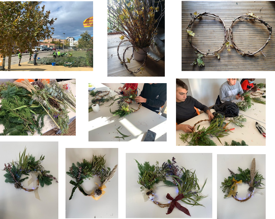 Els alumnes del PFI-PTT Auxiliar de vivers i jardins han desenvolupat un microprojecte de creació de corones nadalenques vinculat a l’Associació de comerciants del municipi.