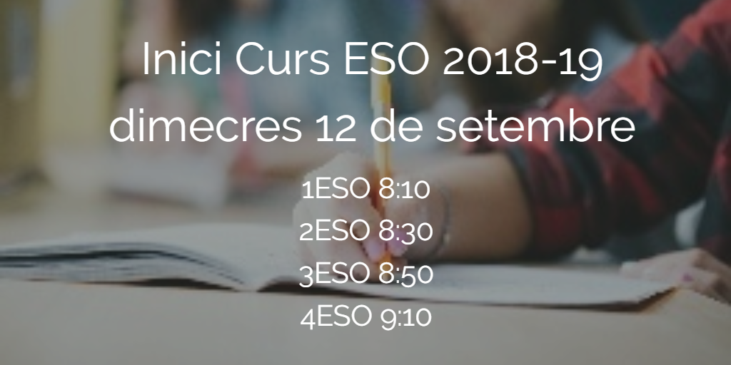 La reunió de pares i mares d’alumnes de 1r i 2n de Batxillerat del curs 2018-19, es farà el dilluns 15 d’octubre a les 19:30.