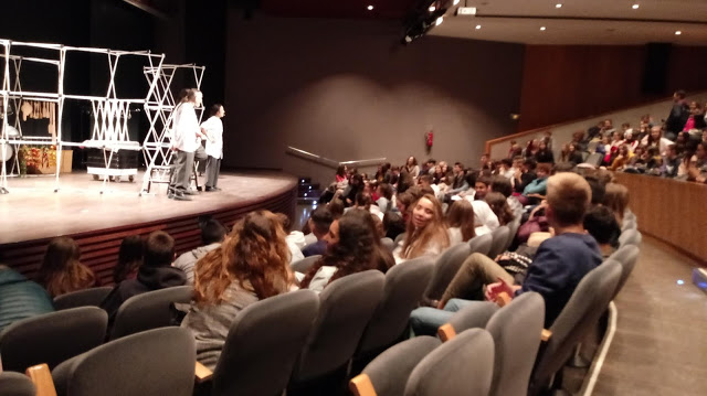 El Dimarts 6 de novembre vam acudir a la cita amb Cervantes amb tot l’alumnat de 1r de Batxillerat. Ens van acompanyar les professores del departament de Castellà María Jesús Orea i Juani Aran. I vam poder gaudir de l’espectacle en clau d’humor ofert per la companyia Transeduca a la sala de teatre de la Diputació de Tarragona.