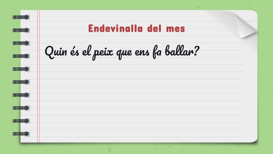 – L’enigma del mes – el podeu resoldre a la capsa que hi ha al costat indicant la solució, el nom i el curs. Tindrà repercussió a la nota de català de comprensió lectora.