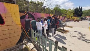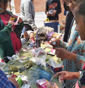 Amb restes de reciclatge hem estat muntatnt una escultura, ajudats per alumnes de batxillerat artístic.