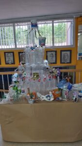 Amb restes de reciclatge hem estat muntatnt una escultura, ajudats per alumnes de batxillerat artístic.