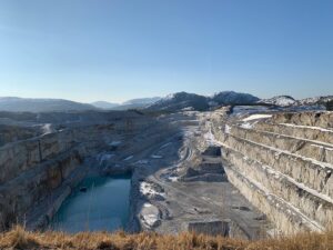 Today we went on a fieldtrip! We took a bus and we started by visiting a quarry called Brønnøy Kalk, where they extract marble that they later use in the paper industry. They select the marble without impurities and polish it before transporting it in large trucks. The sulfates and the materials extracted from the process are thrown into a kind of turquoise pool and over time, the water is taken to a nearby fjord. They use different tools to gloss over the stone and make its surface smoother and shiner.