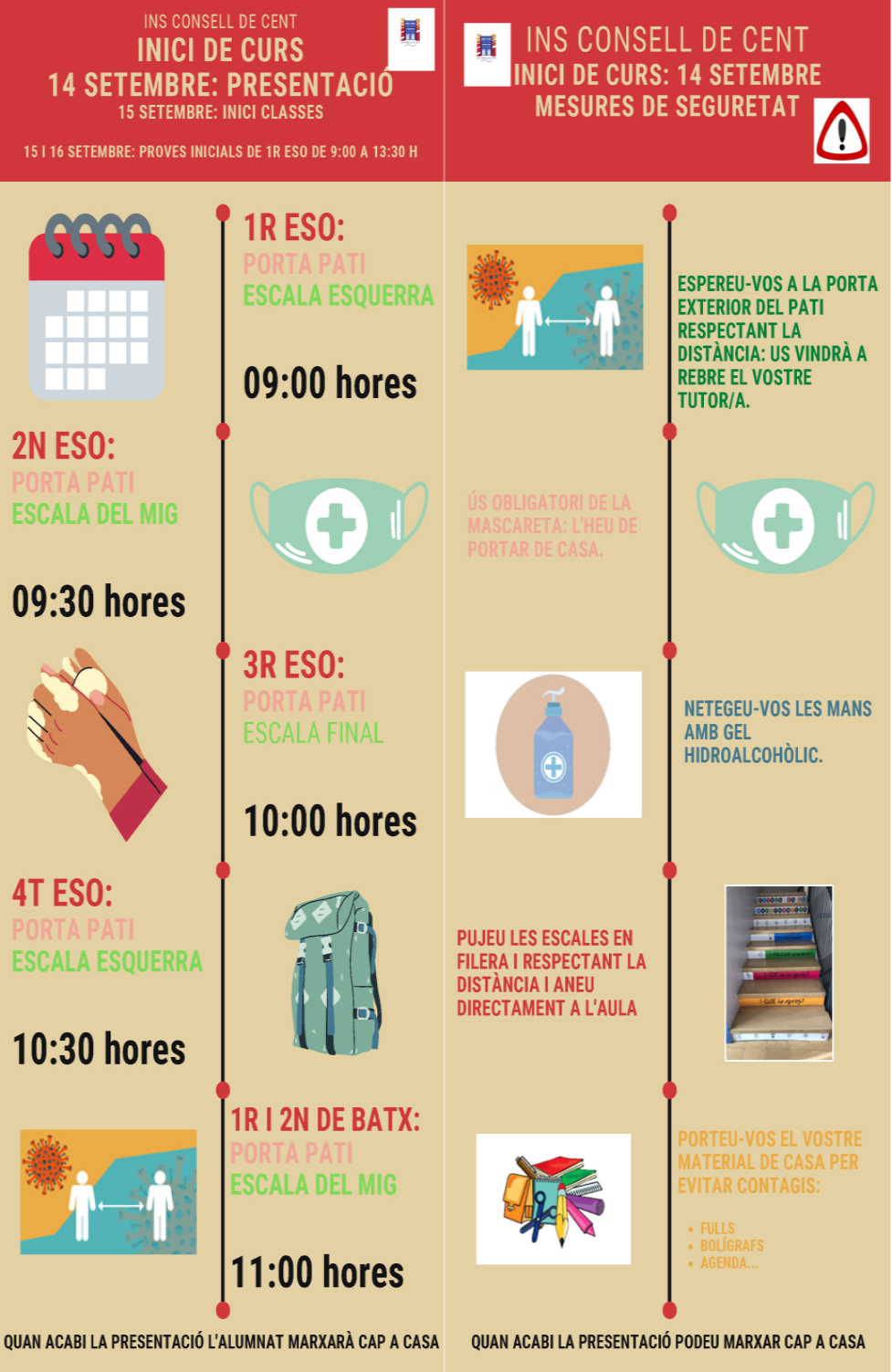 INFORMACIÓ IMPORTANT INICI CURS 2020-2021 Feu un comentari / Per admin / 7 de setembre de 2020 / General Portada Aquesta infografia és un resum de les mesures d’inici de curs. Esperem que us siguin útils.