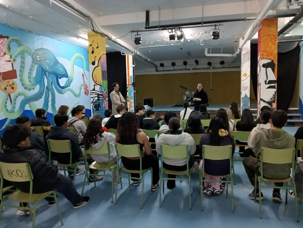 L’assessor LIC SE Sants-Montjuïc ha assistit a la presentació del programa de les parelles lingüístiques que s’està duent a terme a l’institut Consell de Cent amb l’entrega del material del consorci als alumnes que participen al projecte. Al final de la presentació l’alumnat d’aula d’acollida i els voluntaris per la llengua s’han trobat en una segona sessió presencial per poder conversar en català i millorar l’expressió oral i la fluïdesa de les persones nouvingudes.