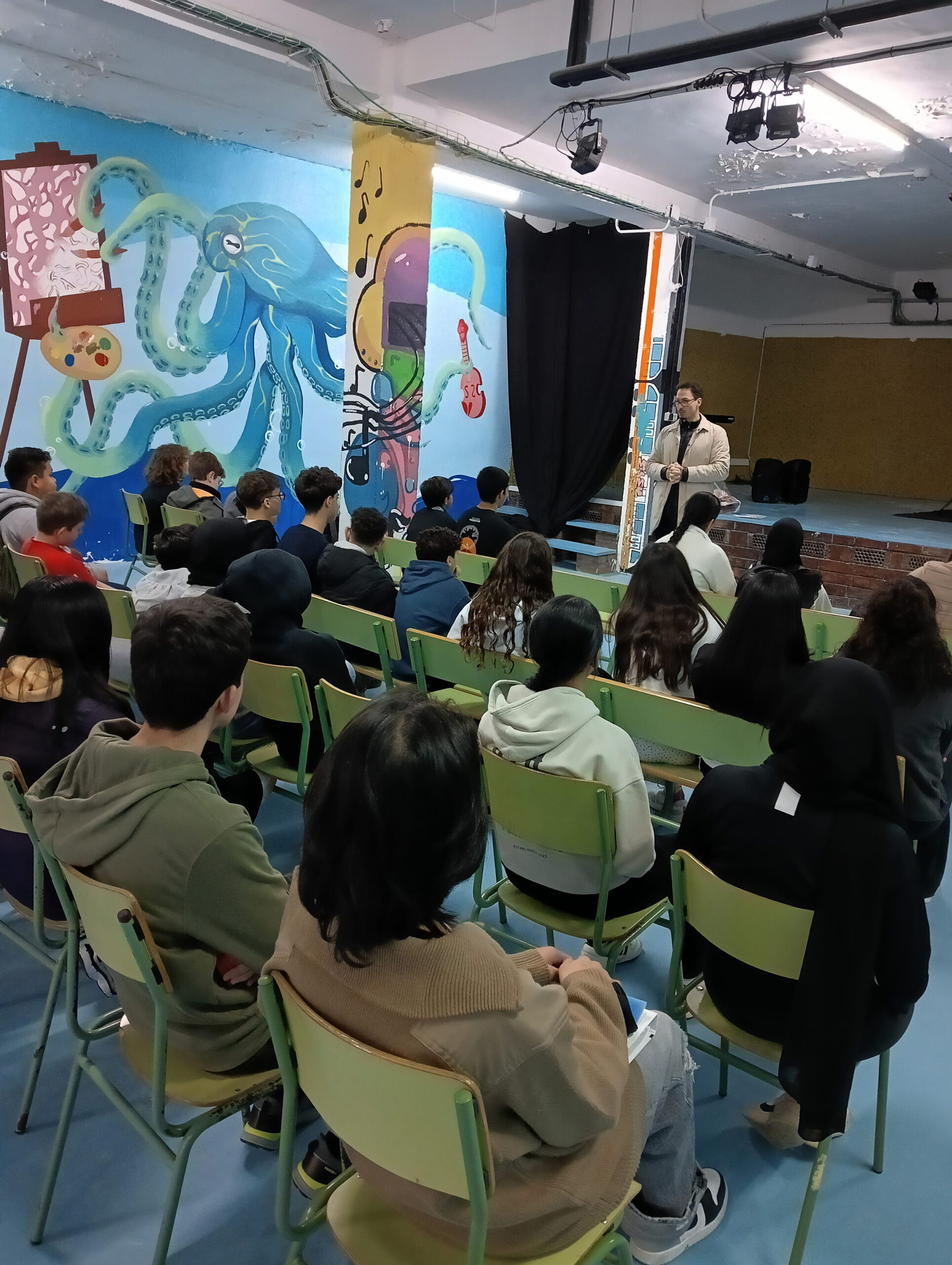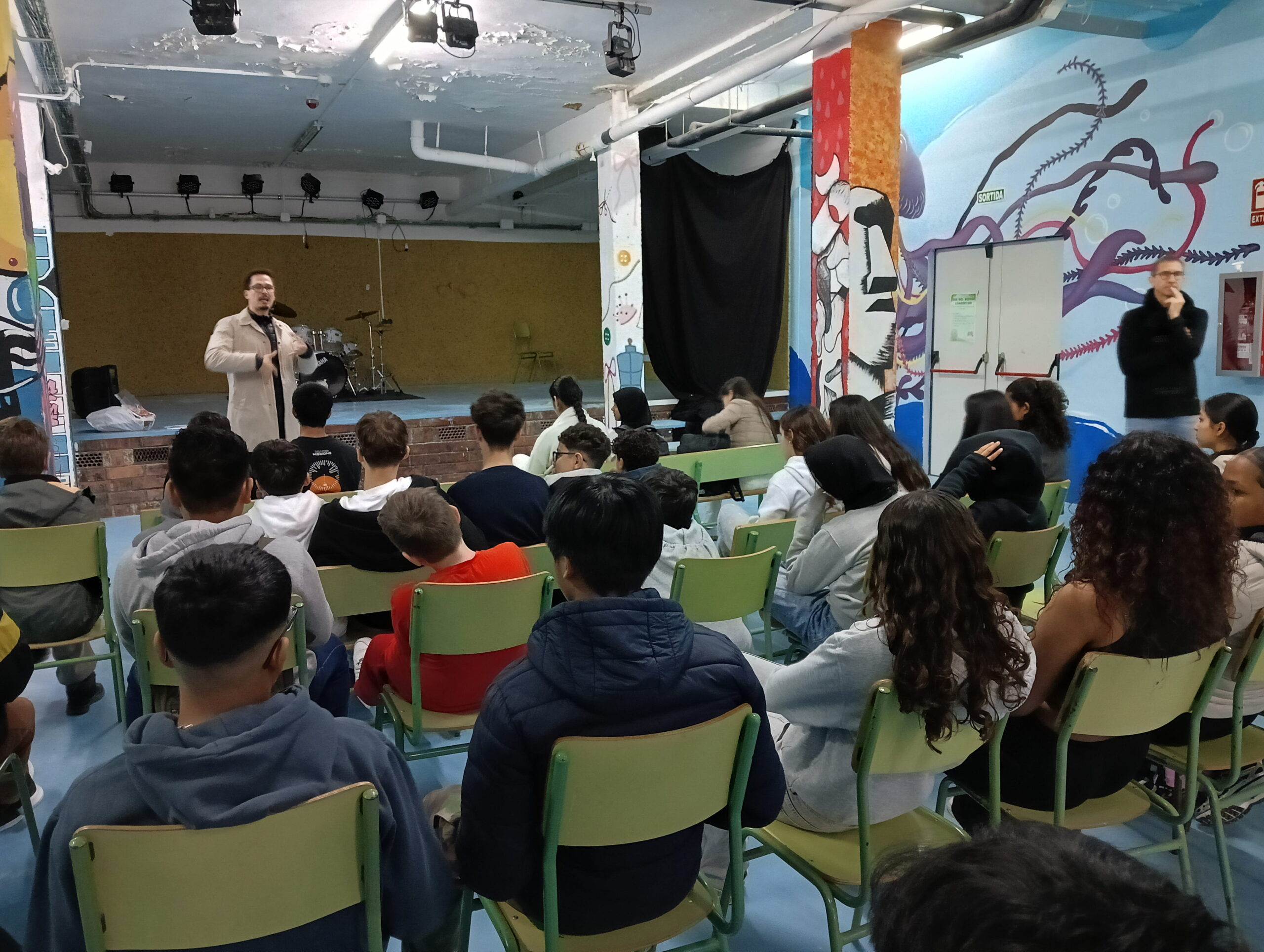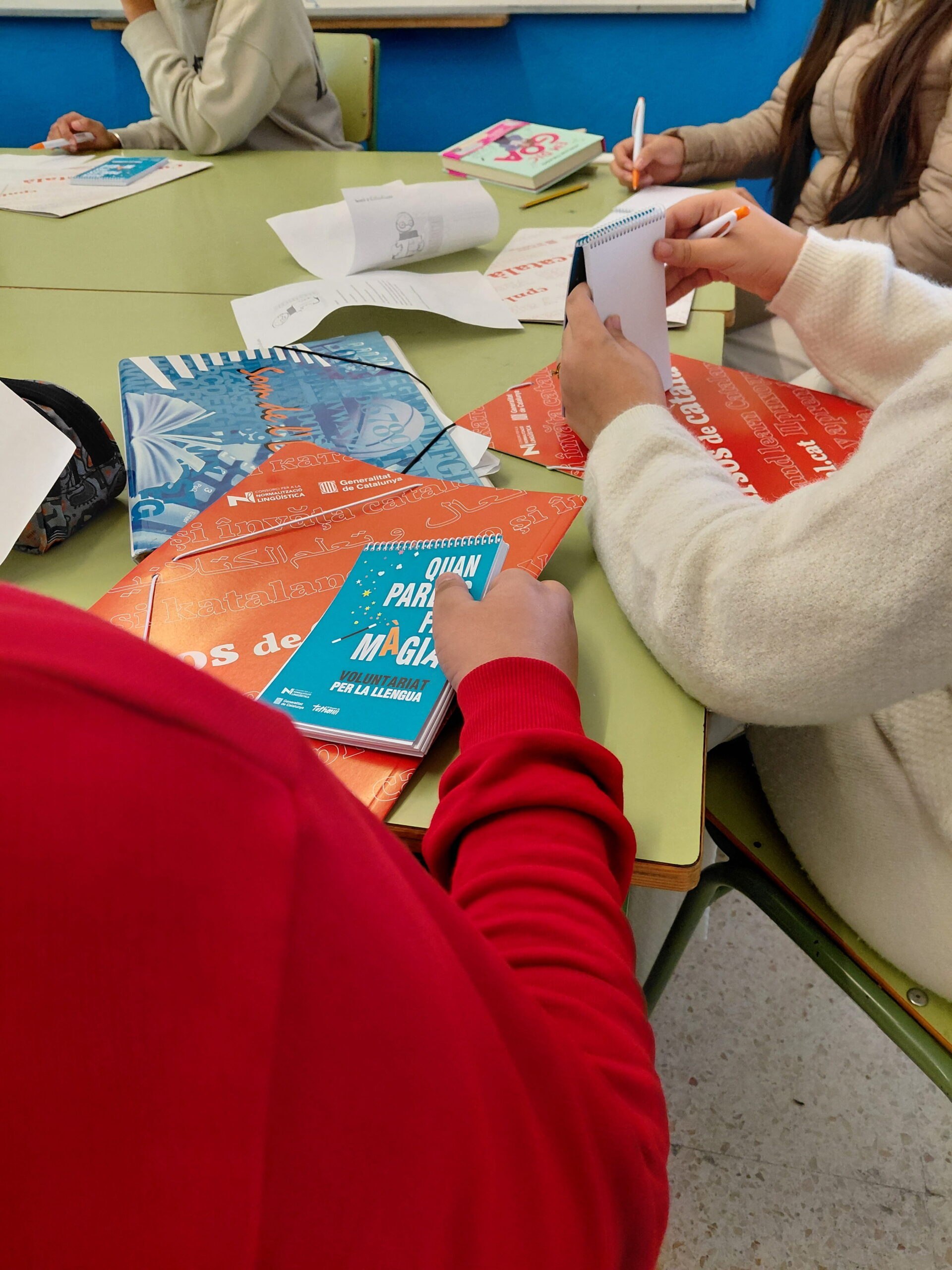 L’assessor LIC SE Sants-Montjuïc ha assistit a la presentació del programa de les parelles lingüístiques que s’està duent a terme a l’institut Consell de Cent amb l’entrega del material del consorci als alumnes que participen al projecte. Al final de la presentació l’alumnat d’aula d’acollida i els voluntaris per la llengua s’han trobat en una segona sessió presencial per poder conversar en català i millorar l’expressió oral i la fluïdesa de les persones nouvingudes.